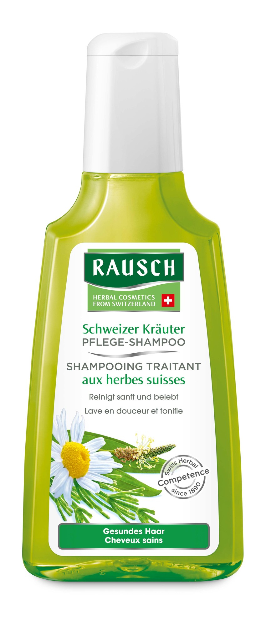 Rausch Swiss Kräuter pflegendes Shampoo reinigt die Kopfhaut, pflegt das Haar und hinterlässt ein Gefühl von Weichheit, Frische und Komfort.