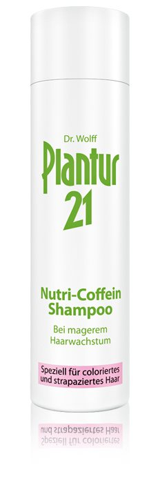 Das Plantur 21 Nutri-Coffein Shampoo ist bei magerem Haarwachstum speziell für koloriertes und strapaziertes Haar geeignet. Es verbessert die Energieversorgung der Haarwurzeln, da es den Abbau des Energieträgers cAMP bremsen kann. Das aktivierende Koffein ist bereits nach 120 Sekunden der Einwirkzeit nachweisbar. Zudem enthält das Shampoo die Mikronährstoffe Biotin (Vitamin B7), Magnesium, Kalzium und Zink, wodurch die Versorgung der Haarwurzel unterstützt wird.