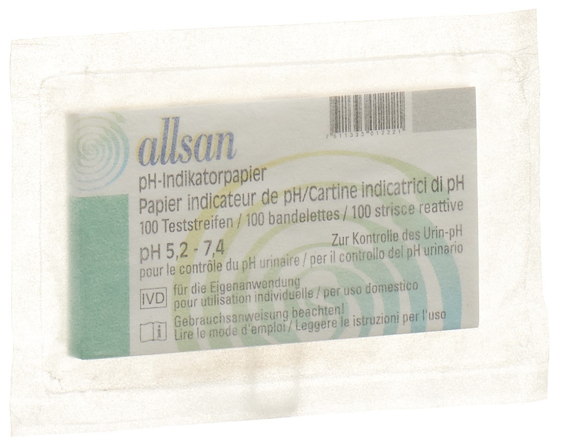 allsan pH-Indikatorpapier dient zur Kontrolle des Urin-pH
