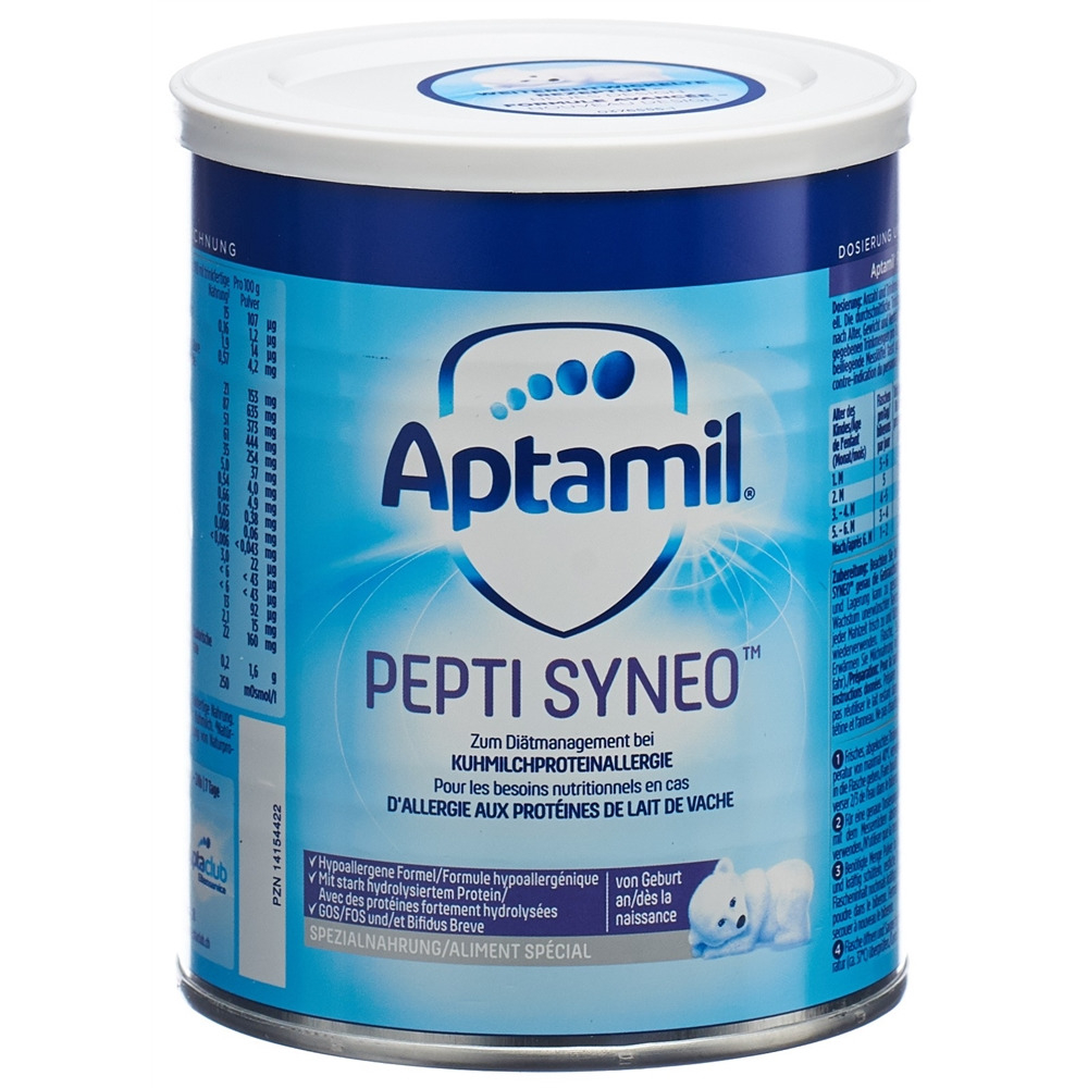 Basierend auf über 40 Jahren Forschung hat unser Team mit mehr als 500 Wissenschaftlern und Experten dazu beigetragen, unser einzigartiges APTAMIL PEPTI SYNEO zu entwickeln. Mit seinem stark hydrolysiertem Protein und der patentierten Kombination aus GOS/FOS ud Bifidus Breve ist die Nahrung zum Diätmanagement bei Kuhmilchallergie abestimmt. GOS/FOS: Ballaststoffmischung Bifidus Breve: Teil der Bakterienfamilie, die natürlicherweise im Darm von Kindern vorkommt. Anwendung: Aptamil Pepti SYNEO ist geeignet zum Diätmanagement bei Kuhmilchproteinallergie. Aptamil Pepti SYNEO kann zur ausschliesslichen Ernährung Ihres Babys von GEburt an verwendet werden.