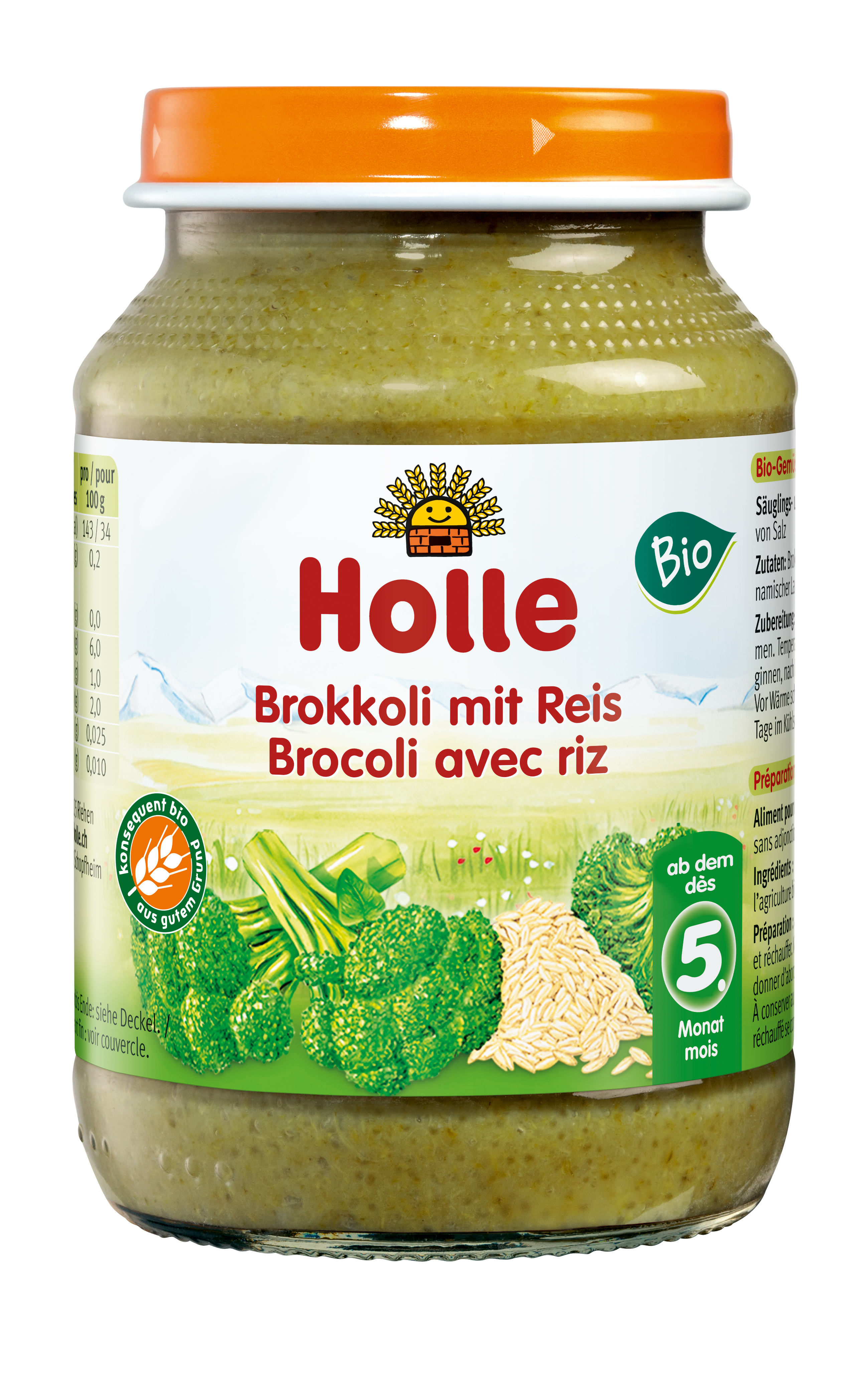 Das Babygläschen Brokkoli mit Reis eignet sich besonders für die weitere Beikosteinführung und zur Zubereitung der ersten Menüs, um neue Zutaten kennen zu lernen. Der Gemüsebrei ist fein püriert und nur beste Bio- und Demeter-Zutaten aus streng kontrolliertem Anbau werden für die Holle Gläschen verwendet.