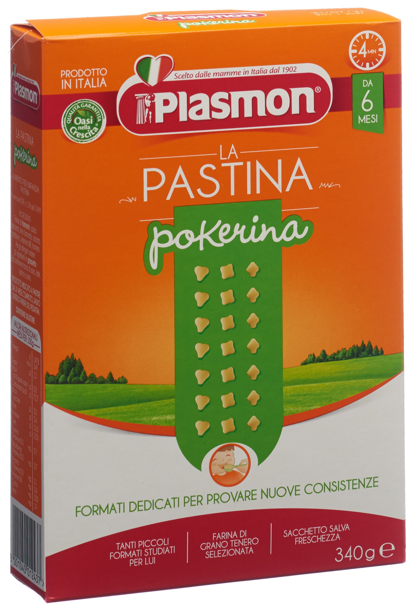 200/250 ml Wasser oder Gemüsebrühe zum Kochen bringen. Fügen Sie 2 Esslöffel Plasmon Pokerina hinzu und kochen Sie 4 Minuten lang. Für die Zubereitung des Breis verwenden Sie Plasmon-Gemüsebrühe und wählen zwischen den homogenisierten oder gefriergetrockneten Plasmon-Sorten.