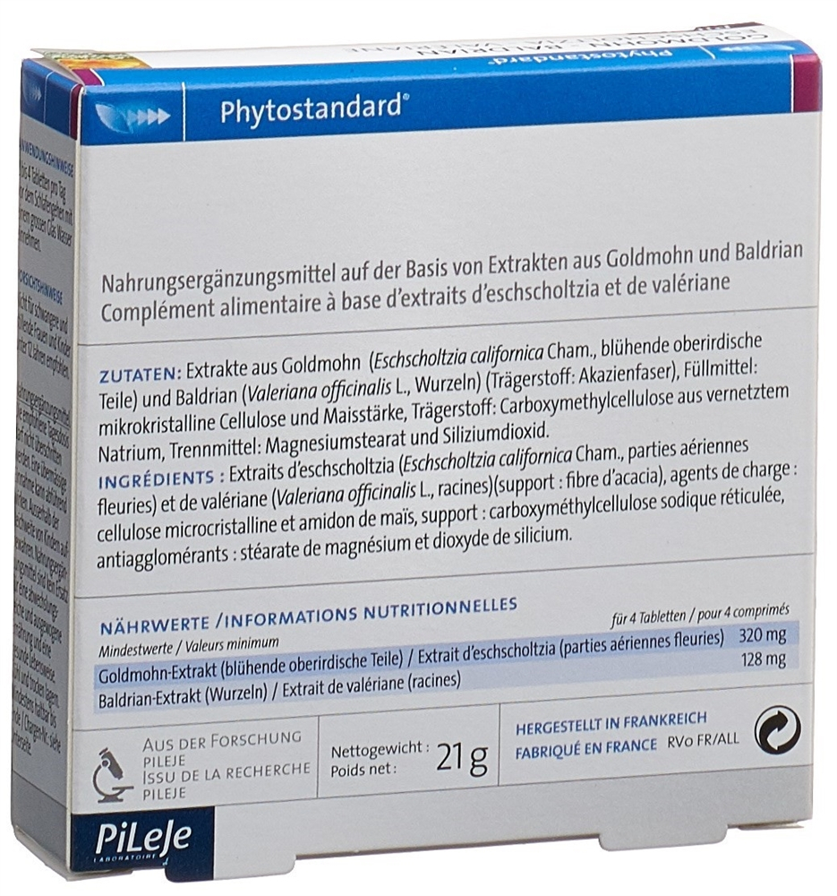 Phytostandard DUOS Goldmohn-Baldrian ist eine Nahrungsergänzungsmittel auf der Basis von Extrakten aus Goldmohn und Baldrian.