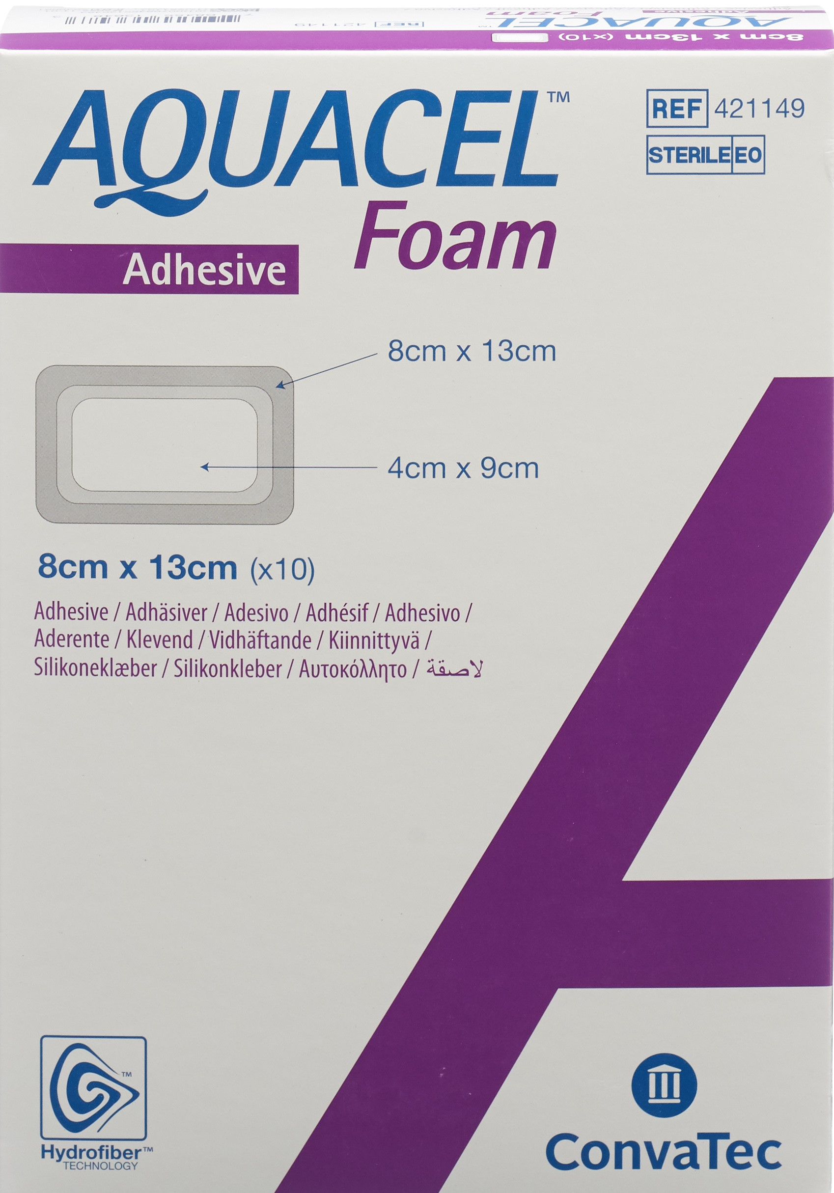 AQUACEL Foam Schaumverband adhäsiv 8x13cm 10 Stk