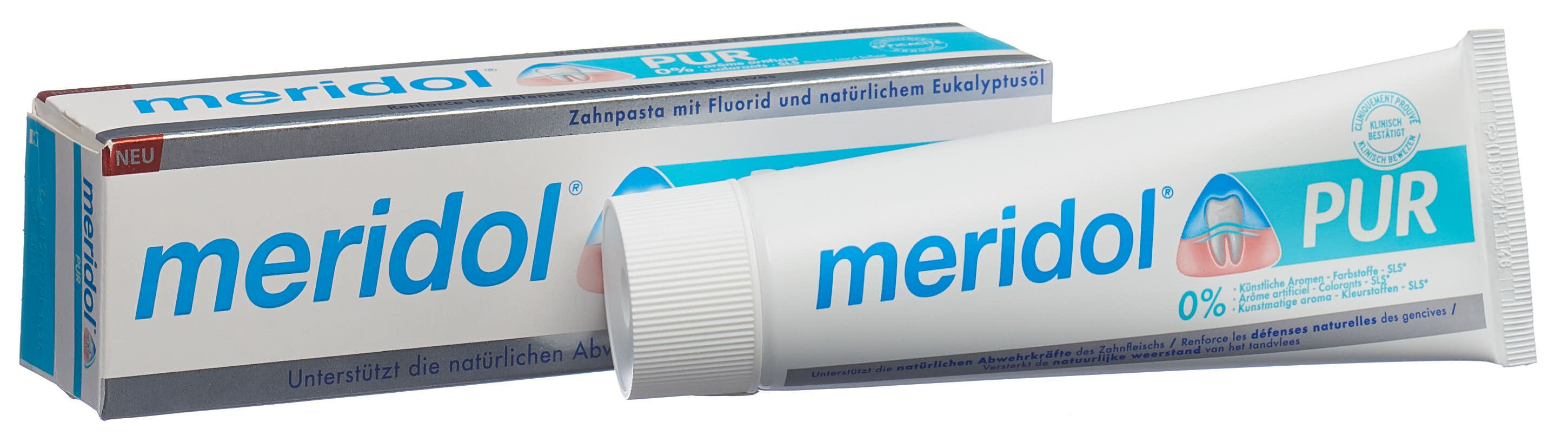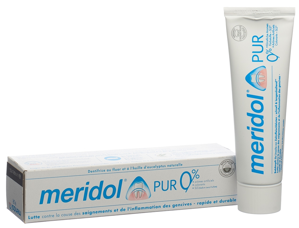 meridol Pur Zahnpasta bekämpft Bakterien am Zahnfleischrand - die Ursache von Zahnfleischentzündungen. Sie hilft Zahnfleischbluten, Zahnfleischrückgang; Parodontitis, Plaquebildung und Karies vorzubeugen.