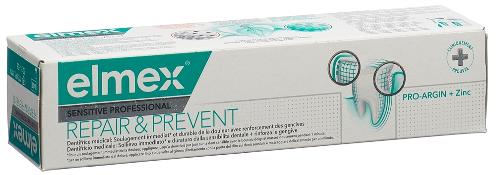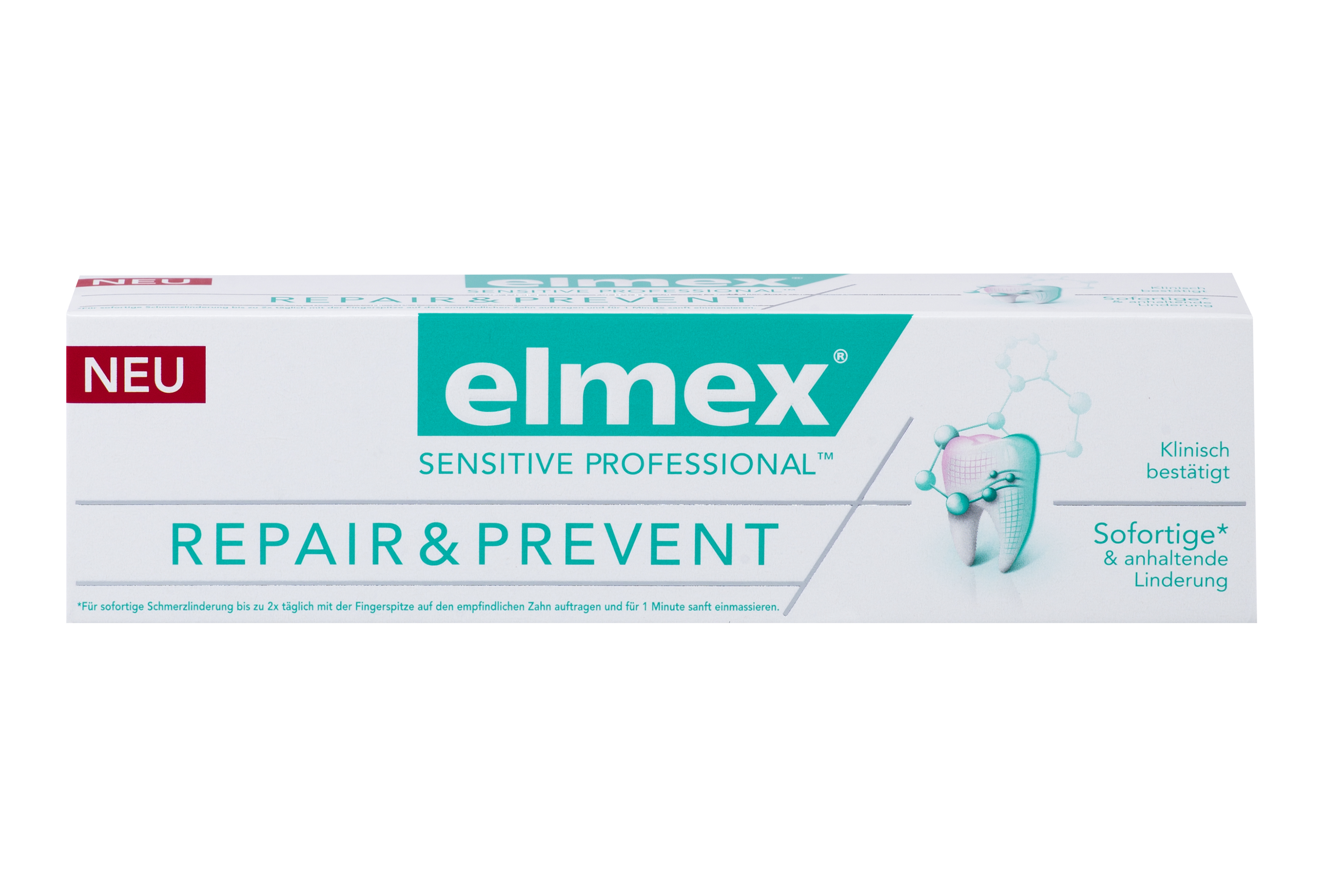 elmex Sensitive Professional Repair & Prevent Zahnpasta mit Pro-Argin Formel lindert und beugt neuen Schmerzen vor – sofort und anhaltend.