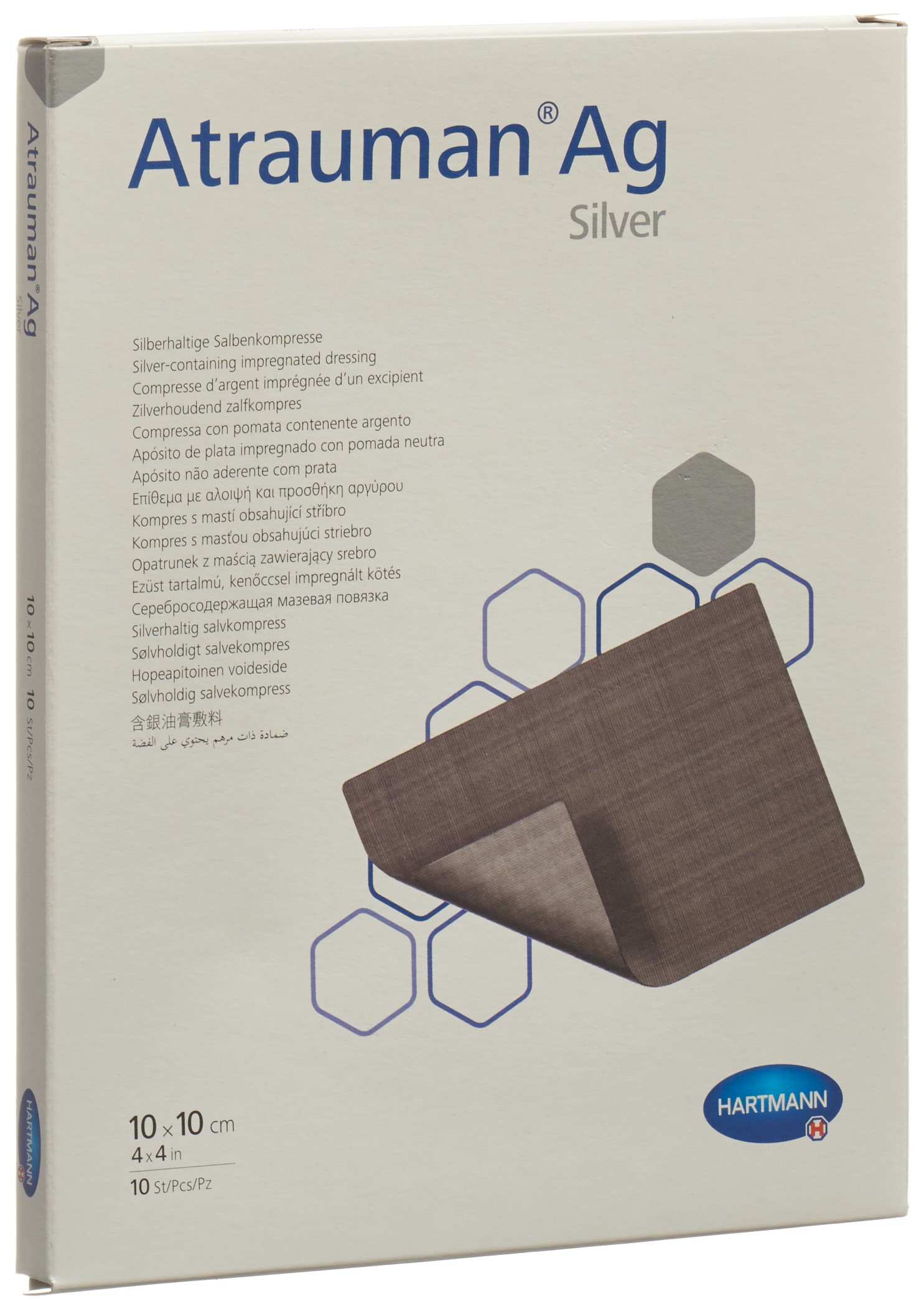 Atrauman Ag ist eine nichthaftende Wundkontaktschicht, die für die Behandlung von chronischen Wunden wie Ulcus cruris, diabetischem Beinulkus und Dekubitus geeignet ist. Das Produkt dient ausserdem zur Behandlung akuter Verbrennungen bis zweiten Grades. Atrauman Ag ist für Behandlungen auf der menschlichen Haut durch qualifizierte Fachkräfte geeignet. Das Trägermaterial besteht aus Polyamid, dessen Fasern mit elementarem Silber ummantelt sind. Die Imprägnierung auf Triglyzerid-Basis (neutrale Lipide) ist wirkstofffrei. Die Imprägnierung enthält (INCI-Bezeichnungen): Caprylic/Capric/Myristik/Stearic Triglyceride; Bis-diglycerylpolyacyladipate-2 und Macrogol 2000. Das weiche, dünne Trägermaterial ist gut drapierfähig und stellt einen engen Kontakt mit dem Wundgrund sicher. Die Oberfläche des Materials und die Imprägnierung wirken einem Verkleben mit der Wunde entgegen, sodass ein atraumatischer Verbandwechsel möglich ist. Atrauman Ag ist ein silberhaltiger Wundverband. Die Imprägnierung pflegt die Wundränder und beugt Mazerationen vor. Sie ist wirkstofffrei und enthält kein Paraffin.Analoga und ähnliche Produkte