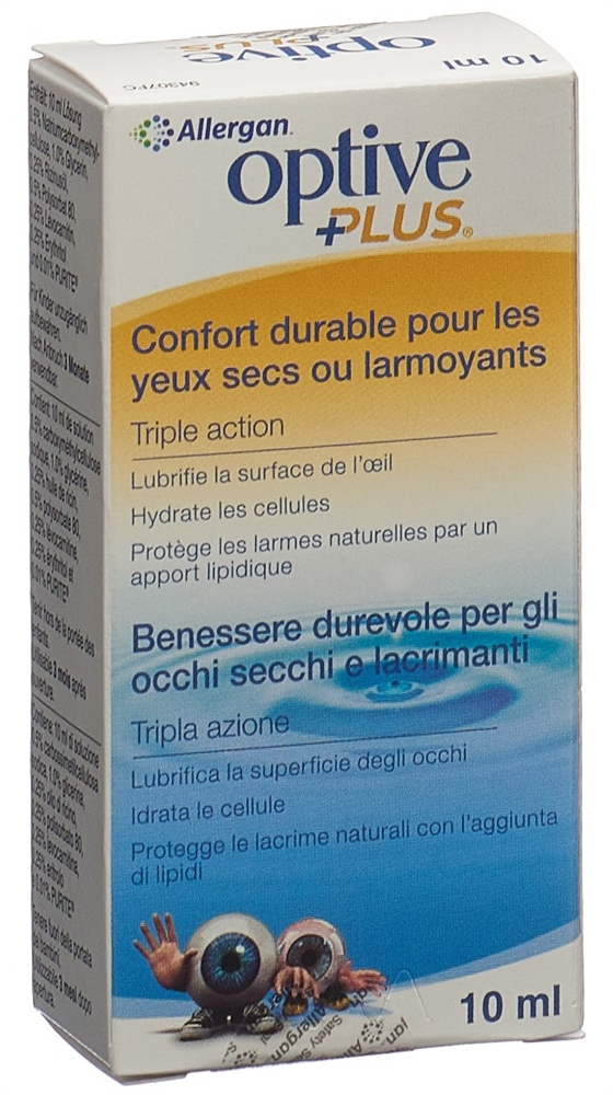 Optive Plus hat eine spezifische, dreifach wirksame Zusammensetzung und verschafft lang anhaltendes Augenwohlgefühl. Optive Plus benetzt die Augenoberfläche und spendet den Zellen der Augenoberfläche Feuchtigkeit durch Wiederherstellung des osmotischen Gleichgewichts und schützt Ihre natürliche Tränenflüssigkeit mit einem ergänzenden Lipid.