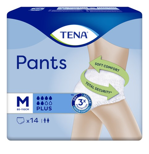 Tena Pants Plus sind diskrete Inkontinenz-Einweghosen für mittlere bis starke Blasenschwäche mit einer komfortablen, körpernahen Passform. Beim Tragen bildet der dünne und flexible ConfioFit-Saugkern zwei Absorptionskammern, welche die Flüssigkeit schnell und sicher vom Körper wegleiten. Die integrierten Auslaufbarrieren sorgen für zusätzliche Sicherheit, wobei Ihnen ein trockenes und sicheres Gefühl geboten wird. Ein Odour Neutralizer im Kern reduziert ausserdem die Auswirkung von Ammoniak, wodurch unerwünschte Gerüche neutralisiert werden.