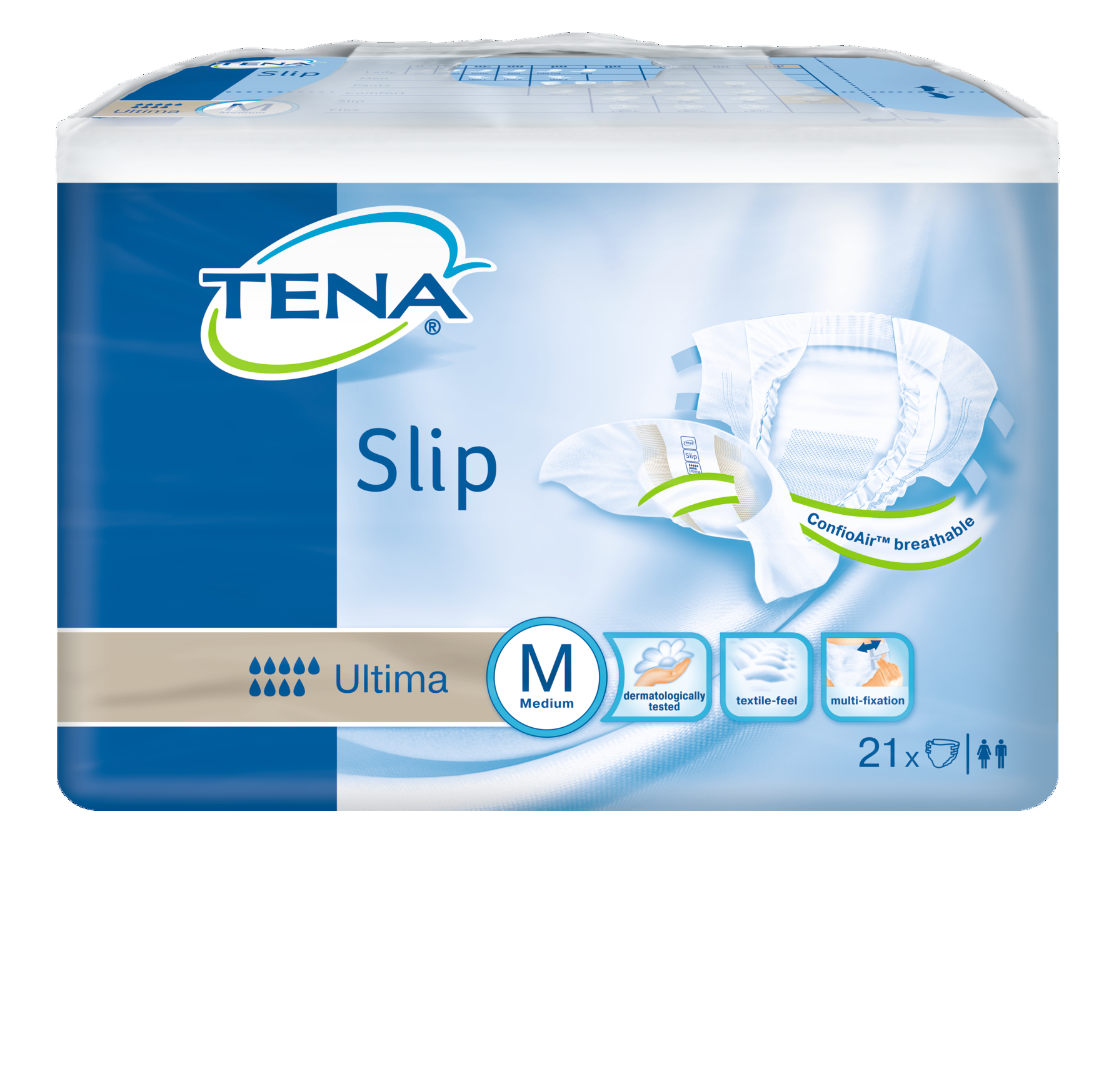 Der Tena Slip Ultima für schwere Inkontinenz besteht aus dem komplett atmungsaktiven ConfioAir-Material, welches Trockenheit, Komfort und eine gesunde Haut garantiert. Er eignet sich für grosse Mengen schwallartigen Urinverlust sowie für die Anwendung über Nacht. Extra breite Klett und Klebeverschlüsse garantieren einen komfortablen Sitz, wobei der Slip leicht anzulegen und mehrmals anpassbar ist. Der schnelle und hochabsorbierende Kern mit FeelDry-Technologie bietet ausserdem eine hohe Auslaufsicherheit, da selbst grössere Urinmengen schnell und direkt in das Innere des Kerns aufgenommen werden. Ein Nässeindikator an der Aussenseite färbt sich dabei von Gelb auf Blau, wenn es Zeit ist für einen Wechsel.