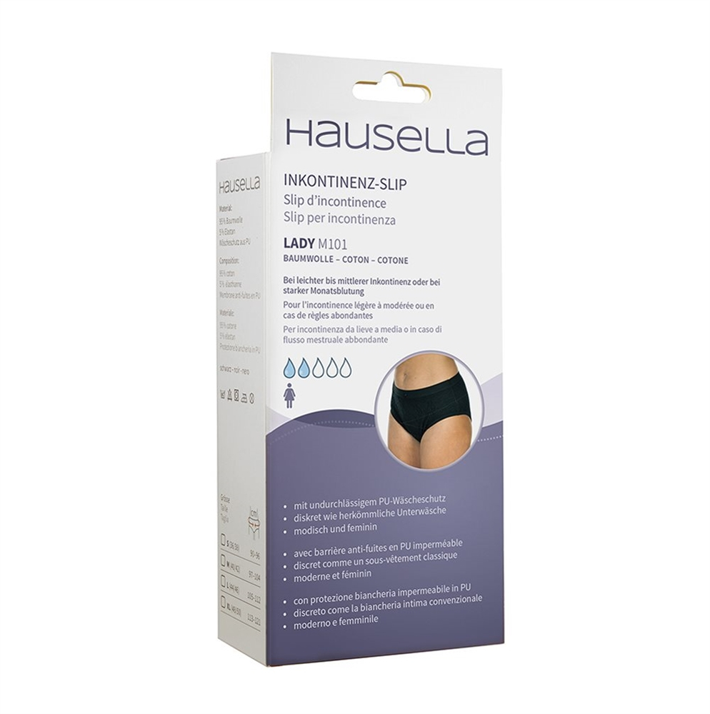 Hausella Inkontinenz-Slip Lady M101 M schwarz aus Baumwolle mit PU-Schutz 1 Stk