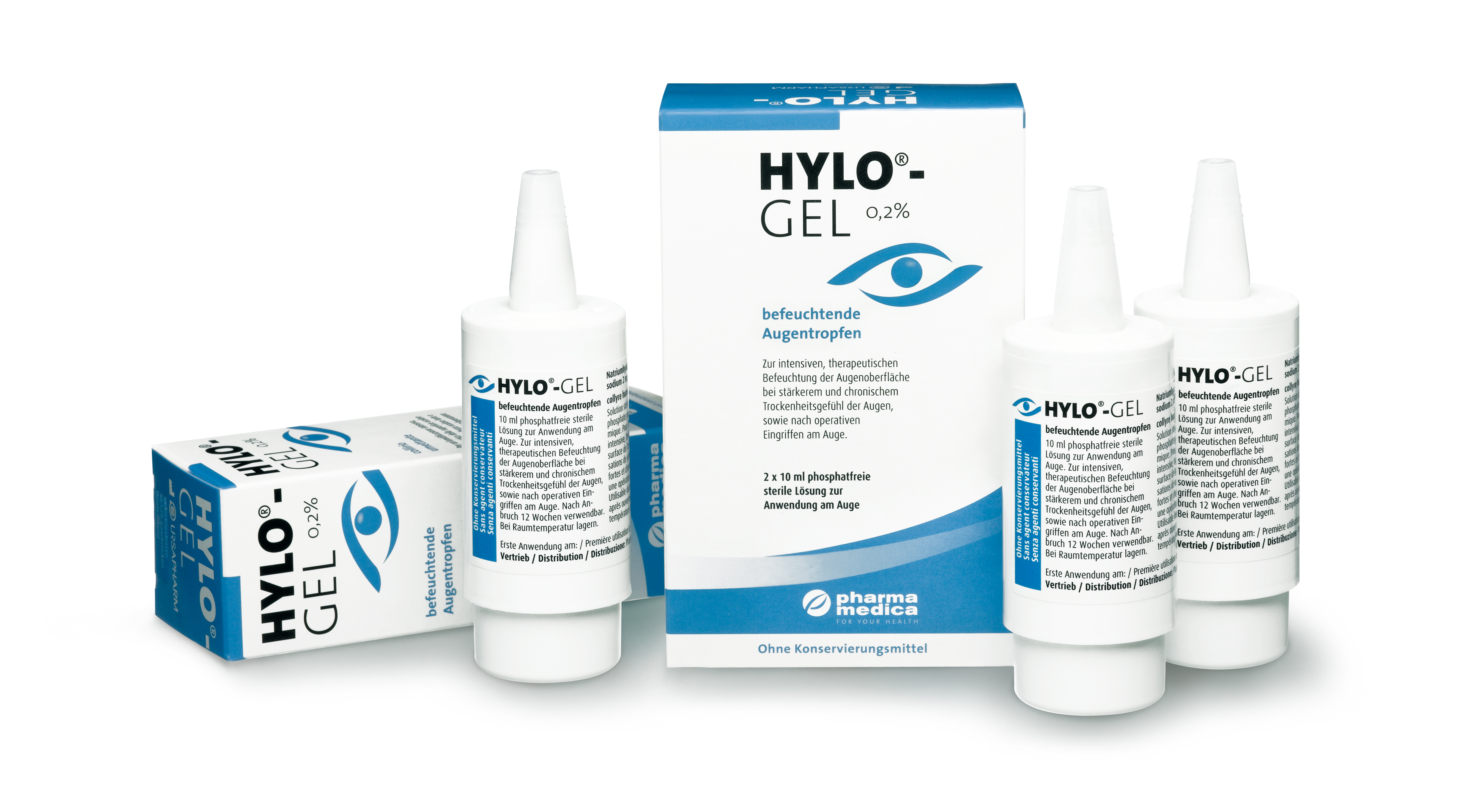 HYLO®-GEL enthält das Natriumsalz der Hyaluronsäure; eine natürliche Substanz, die im Auge, aber auch in anderen Körperteilen zu finden ist. Sie hat die besondere physikalische Eigenschaft, einen gleichmässigen; stabilen und besonders lang haftenden Feuchtigkeitsfilm auf der Oberfläche des Auges zu bilden, ohne rasch abgespült zu werden. Durch diese sogenannte bioadhäsive Eigenschaft werden Hornhaut und Bindehaut gepflegt und zusammen mit den natürlichen Tränen ideal gleitfähig für den Lidschlag. HYLO®-GEL enthält besonders viel Hyaluronsäure und ist deshalb hochviskos. Dadurch wird das Auge besonders intensiv und nachhaltig mit einem stabilen Feuchtigkeitsfilm versorgt. Anhaltende oder stärkere Beschwerden werden gelindert und das Auge dauerhaft vor Reizungen geschützt. Durch operative Eingriffe am Auge oder nach Verletzungen am Auge kann die körpereigene Tränensekretion reduziert sein. Die Regeneration der oberflächlichen Gewebe des Auges erfordert jedoch eine ständige ausreichende Befeuchtung. Durch die Anwendung von HYLO®-GEL werden Hornhaut und Bindehaut lang anhaltend mit Feuchtigkeit versorgt, so dass die physiologischen Heilungsprozesse optimal ablaufen können. Aufgrund der Konservierungsmittelfreiheit wird HYLO®-GEL im Allgemeinen hervorragend vertragen. HYLO®-GEL ist darüber hinaus phosphatfrei, so dass mögliche Komplikationen durch die Bildung von Ablagerungen in der Hornhaut vermieden werden.
