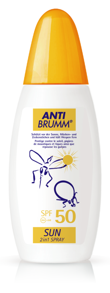 Anti-Brumm® SUN 2in1 Spray SPF 50 schützt die ganze Familie zuverlässig vor Mücken, Zecken und der Sonne mit einem Lichtschutzfaktor (SPF) 50. Es wurde erfolgreich gegen heimische und tropische Mücken sowie Zecken getestet. Das wirkungsvolle UVA/UVB Filtersystem sorgt für einen sofortigen Schutz vor sonnenbedingten Hautschäden. Speziell geeignet für Kinder ab 1 Jahr.