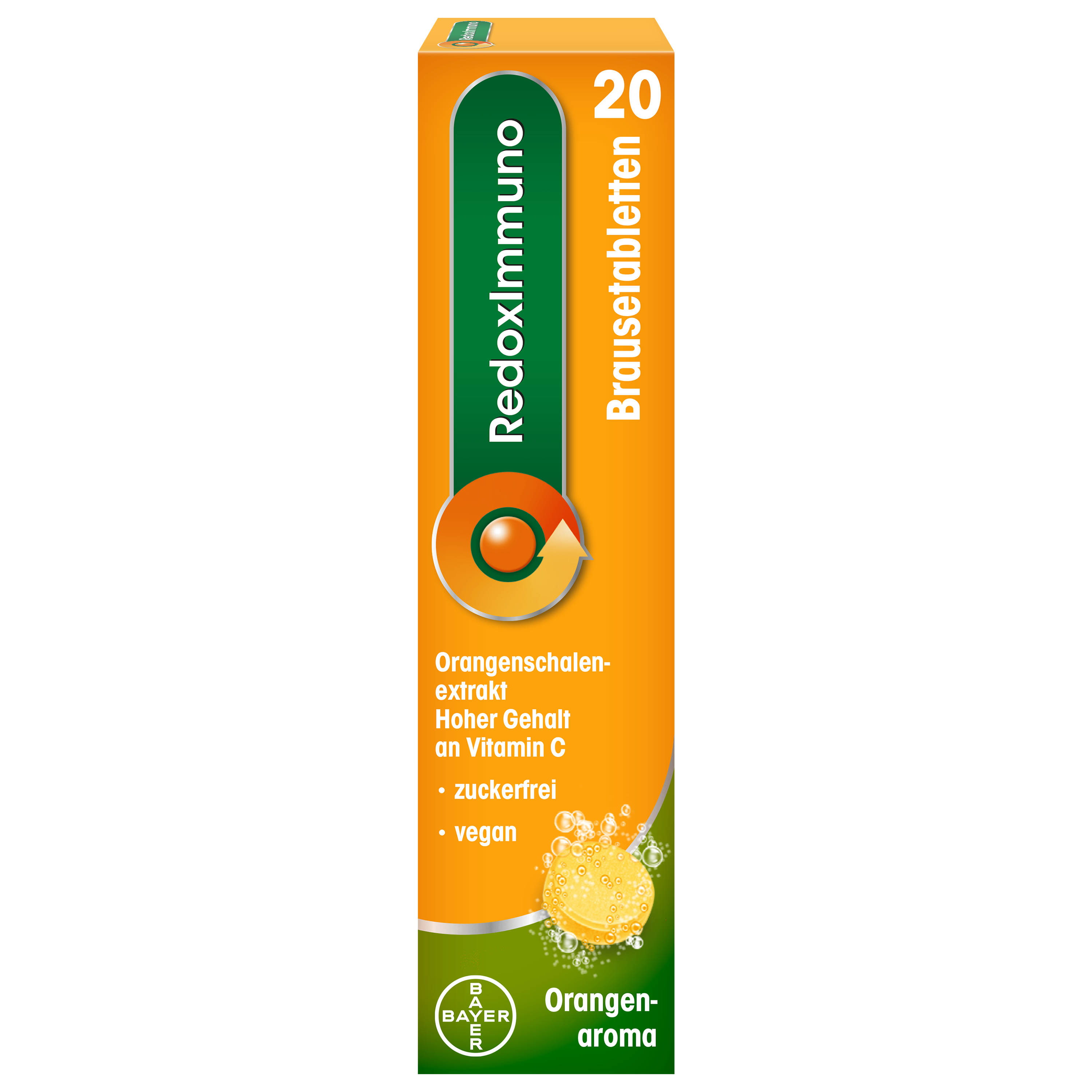 RedoxImmuno mit Orangenschalenextrakt und einem hohen Gehalt an Vitamin C unterstützt das Immunsystem und hat antioxidative Eigenschaften.* Die RedoxImmuno Brausetabletten enthalten Orangenschalenextrakt und mit 500 mg einen hohen Gehalt an Vitamin C. RedoxImmuno kann zur Unterstützung des Immunsystems ergänzend zu einer ausgewogenen Ernährung eingesetzt werden.