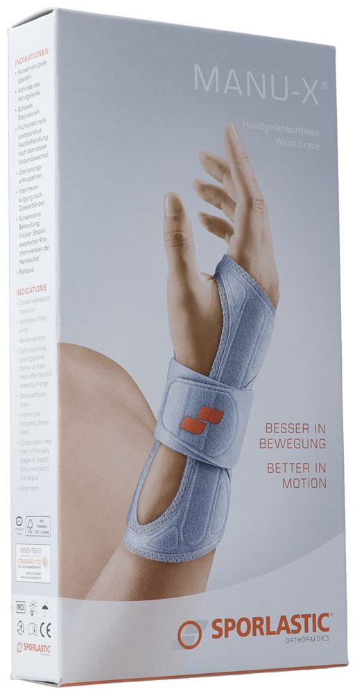 Die Sporlastic Manu X Handgelenkbandage in der Farbe schwarz und Grösse 2 passt bei Handgelenksumfängen von über 17cm. Sie stabilisiert und schont das Handgelenk und ist dabei dank Verstärkungsschienen individuell anpassbar.