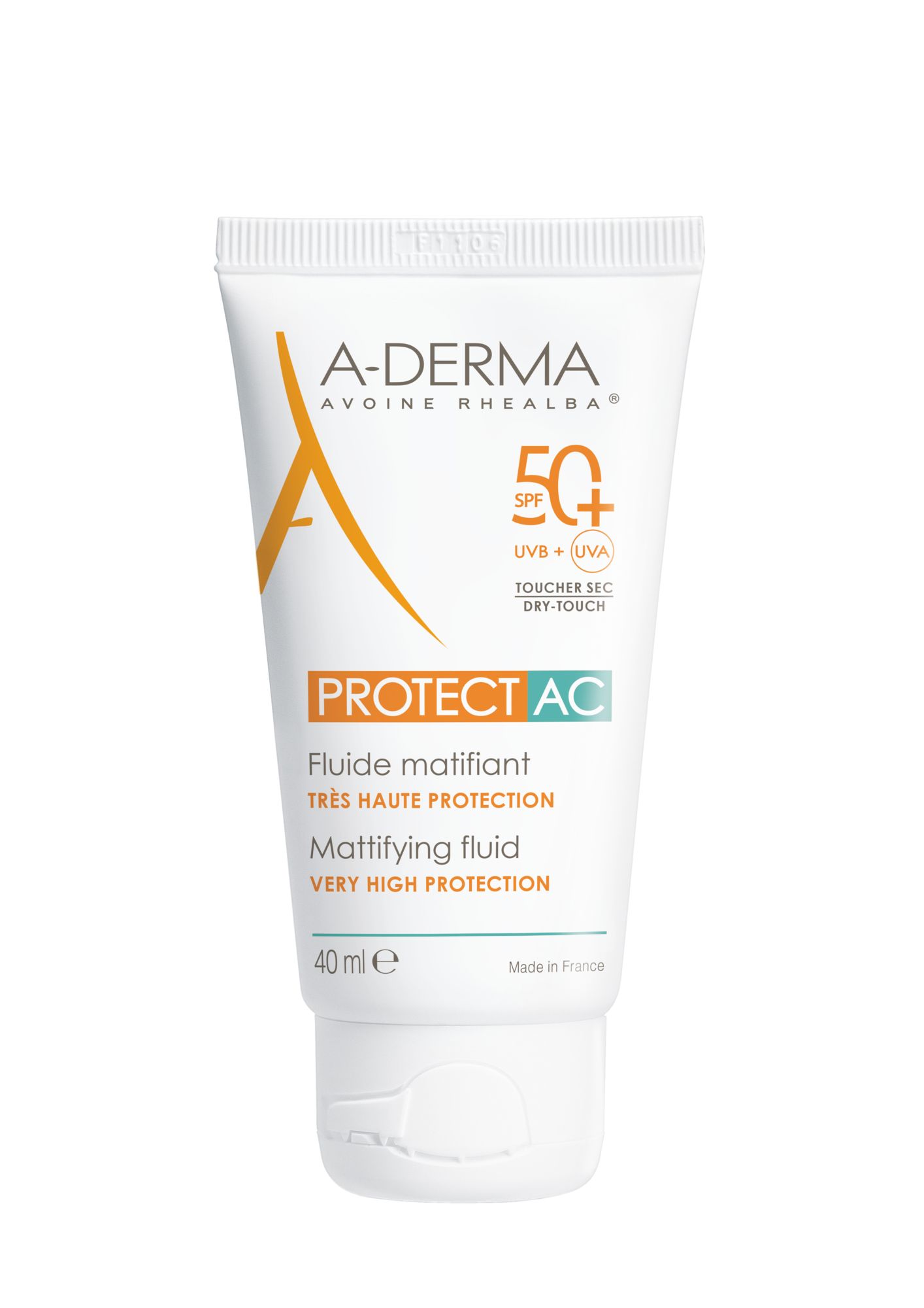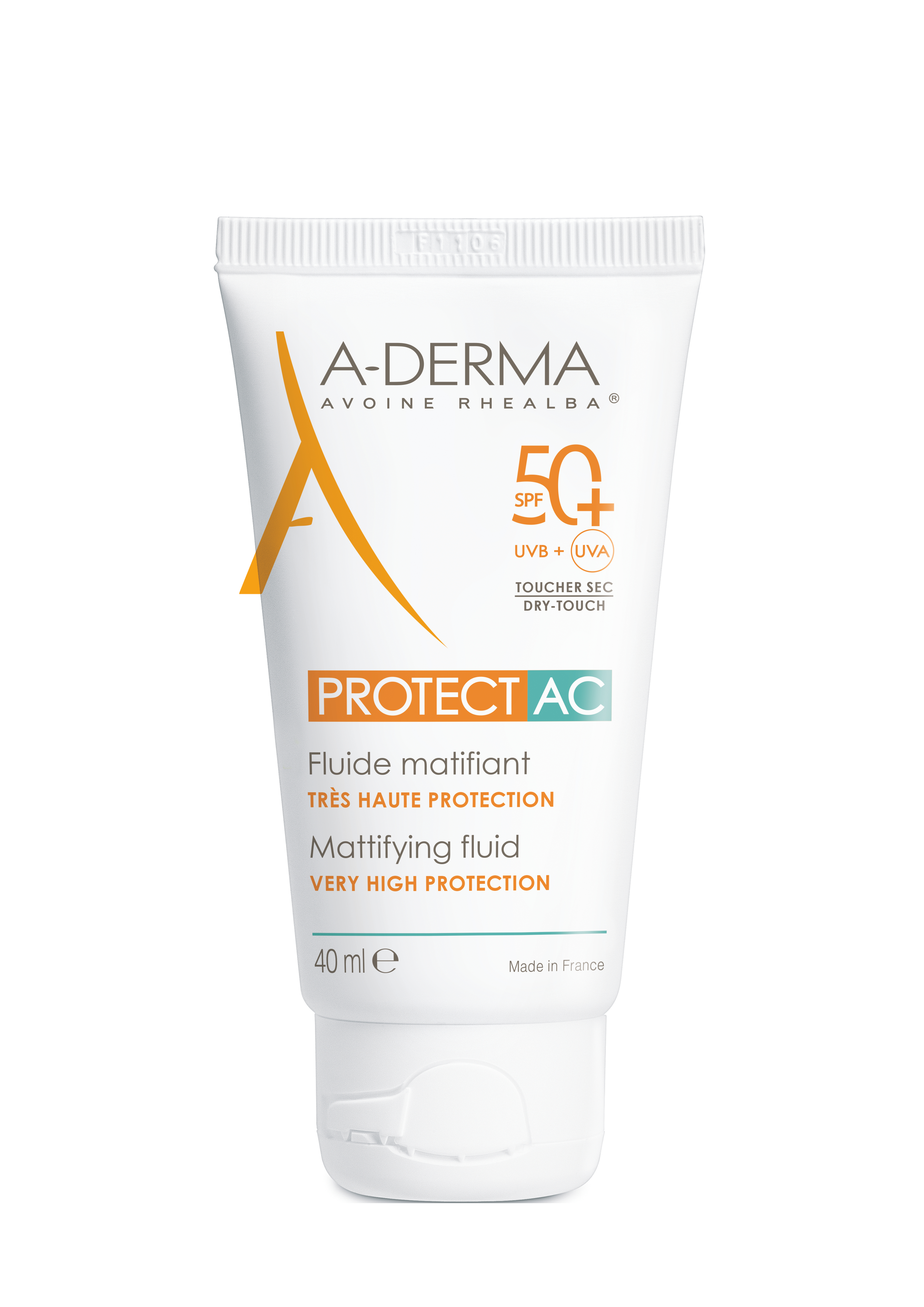 A-Derma Protect AC Mattierende Flüssigkeit verhindert übermässige Fettigkeit und Akne. Diese Flüssigkeit hinterlässt ein trockenes Finish auf der Haut und schützt sie mit LSF 50+ vor UV-Strahlen.