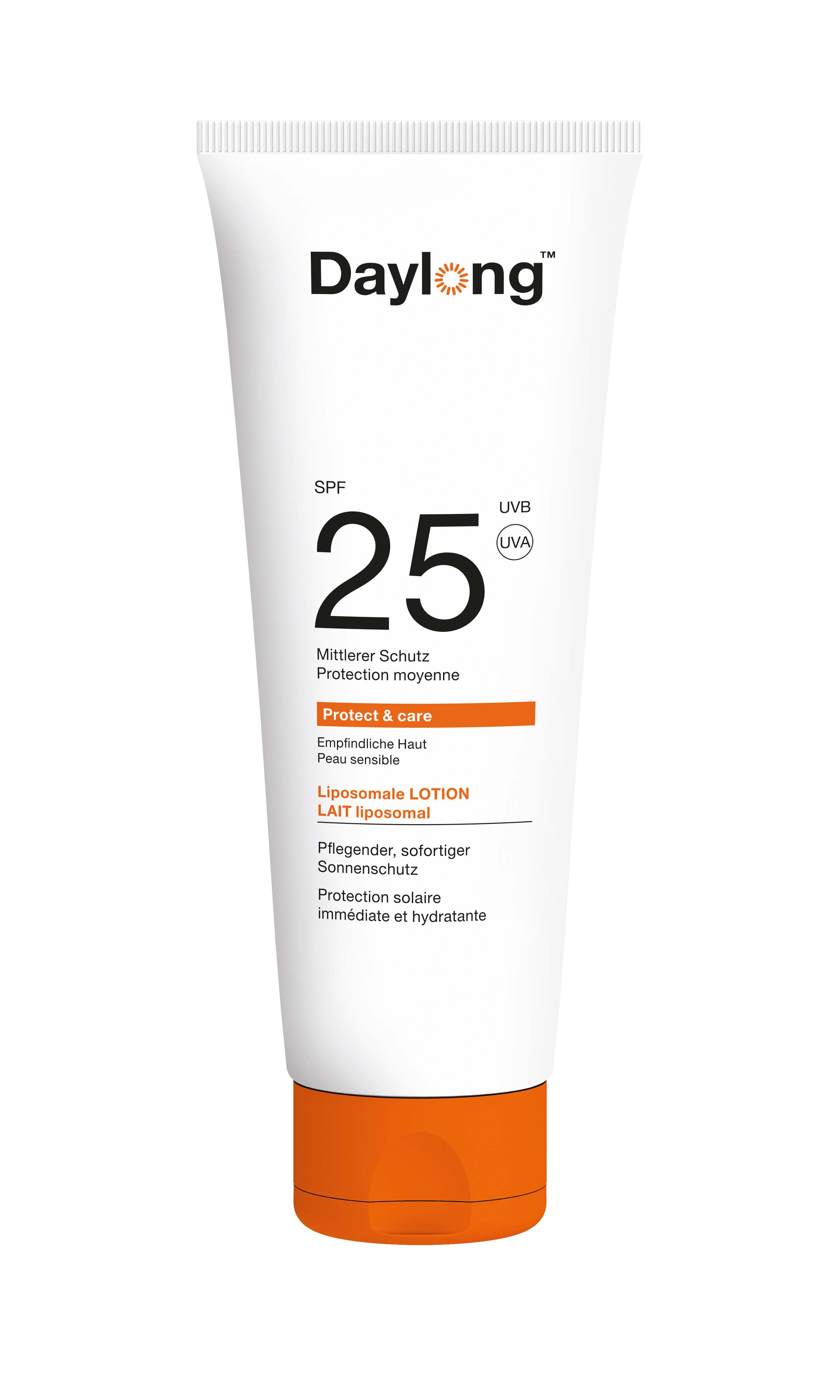 Daylong Protect&care 25 Lotion ist eine liposomale Sonnenschutzlotion für sonnenungewohnte Haut (Hauttypen 2-6). Daylong Protect&care 25 Lotion ist extra wasserfest und bietet dank seinem umfassenden UVA- und UVB-Schutz zuverlässigen Schutz für Ihre Haut vor der Sonne. Ohne zusätzliche Konservierungsstoffe, ohne Parfum.