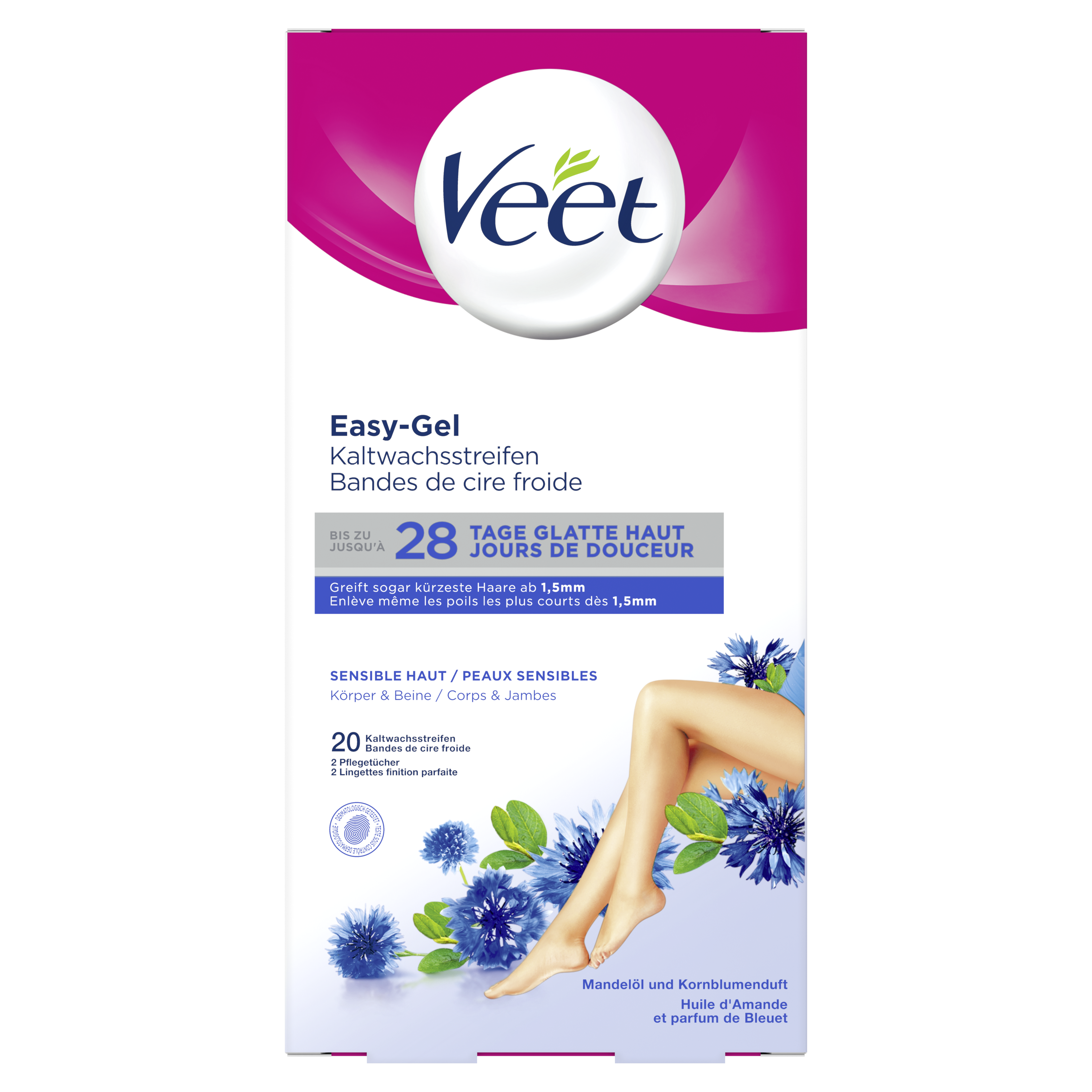 20 Kaltwachsstreifen mit neuer Gelformel, die bis zu 4 Wochen für seidig glatte Haut sorgen. Die spezielle Formel enthält Mandelöl.