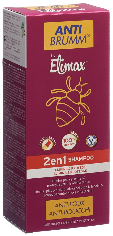 Anti-Brumm® by Elimax® Laus Stopp 2in1 Shampoo - Dieses silikonfreie Shampoo eliminiert nach nur 15 Minuten Einwirkzeit Kopfläuse und Nissen und schützt während 3 Tagen vor Neubefall. Das dermatologisch getestete Shampoo ist für Kinder ab 1 Jahr geeignet und hinterlässt gepflegtes und glänzendes Haar.