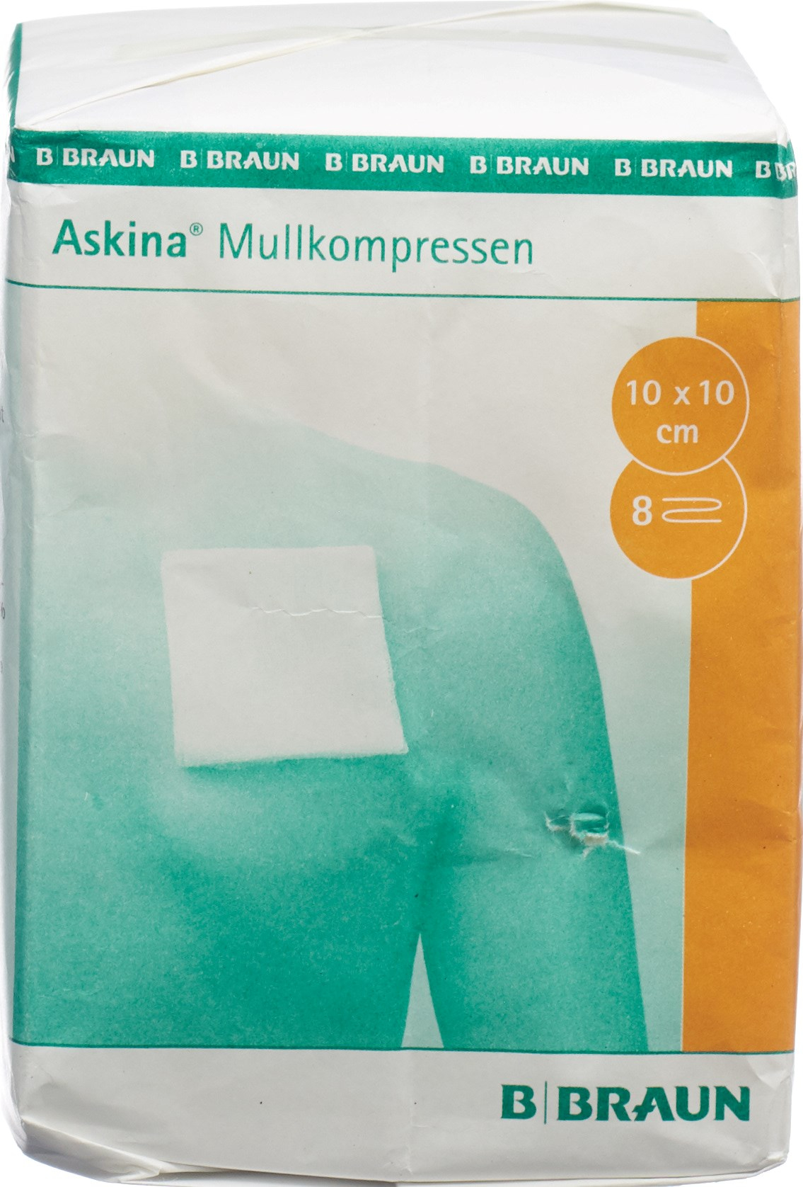 Die 8-lagigen Askina Mullkompressen aus Verbandmull besitzen eingeschlagene Schnittkanten und bestehen aus 100% chlorfrei gebleichter Baumwolle.