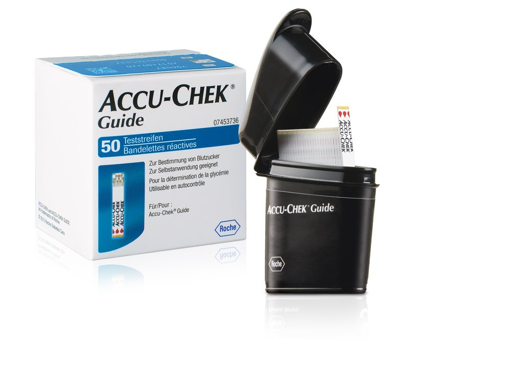 Accu-Chek Guide Teststreifen zur Bestimmung von Blutzucker. Zur Selbstanwendung geeignet. Für den Accu-Chek Guide.