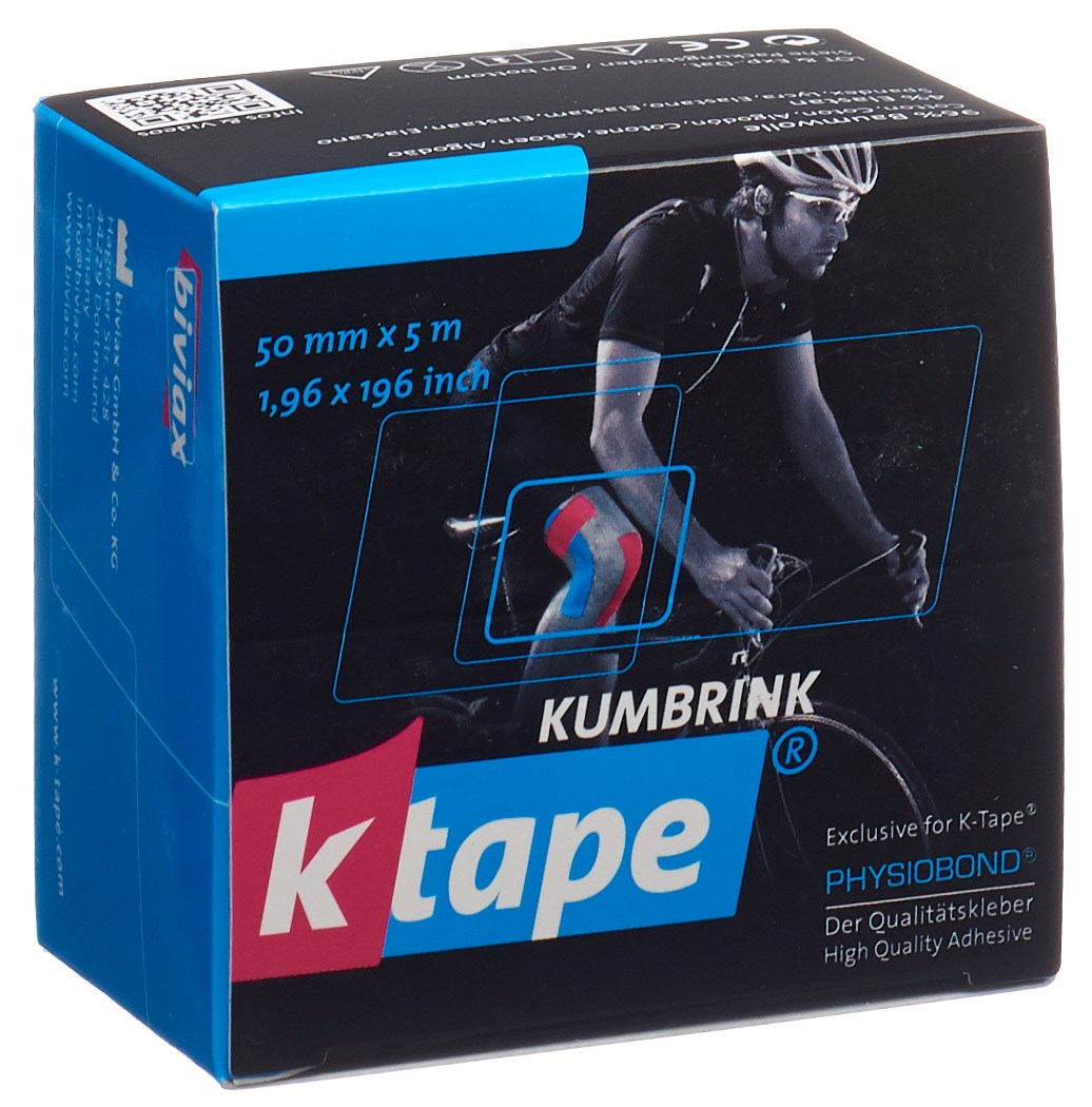K-Tape 5cm X 5m Rolle Blau für die K-Taping Therapie ist ein hochwertiges Baumwolltape mit wellenförmiger Acrylbeschichtung.