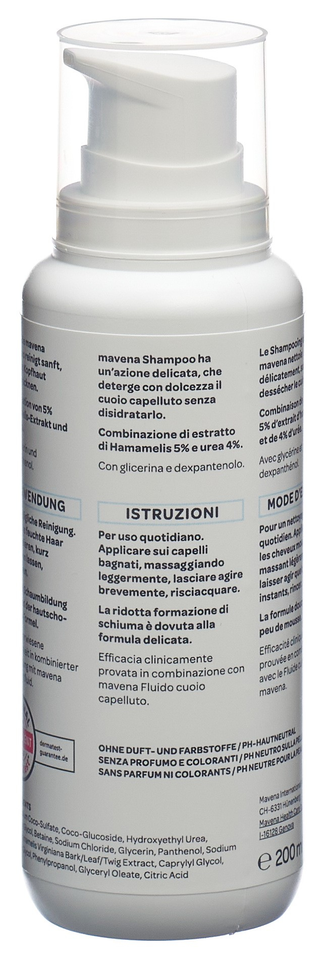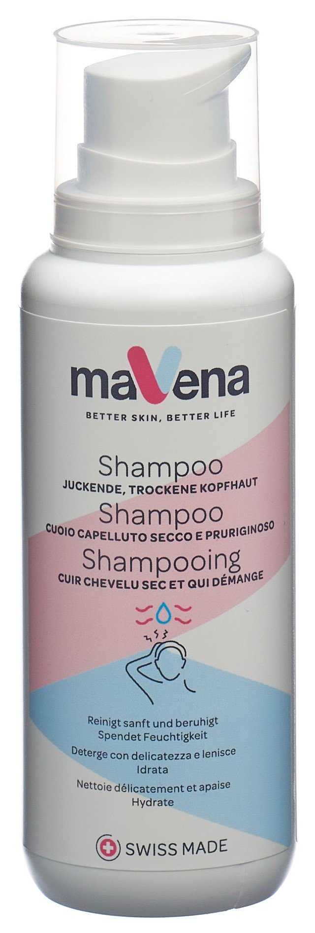 Das milde Mavena Shampoo reinigt sanft, ohne die Kopfhaut auszutrocknen, auch bei täglichem Haare waschen. Das wirkungsvolle Hamamelis mit natürlichen Antioxidantien hilft die juckende & trockene Kopfhaut zu beruhigen und zu schützen.