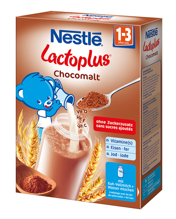 Zutaten: Getreidemehle 94% (WEIZENMEHL teilweise hydrolisiert 49%, WEIZENMEHL 33%, GERSTENMEHL 2,9%, Maismehl 2,9%, ROGGENMEHL, DINKELMEHL, Reismehl, TRITICALEMEHL, VOLLKORNHAFERMEHL), magerer Kakao 5%, Mineralstoffe (Calciumcarbonat, Eisenfumarat, Zinksulfat, Kaliumiodid), Vitamine (C, E, Niacin, B1, A, B6, Folsäure, D), Aroma, Milchsäurebakterienkultur (B. lactis). Kann enthalten: MILCH..