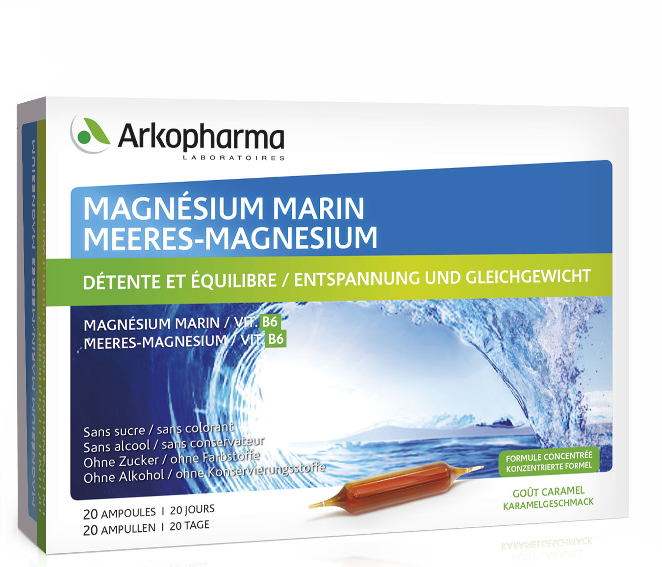 Arkopharma Meeresmagnesium® bringt Ihnen marines Magnesium in Form von Chlorid (eine der am leichtesten vom Körper aufgenommenen Formen) und Vitamin B6, das hilft, Müdigkeit zu reduzieren und gute psychologische Funktionen aufrechtzuerhalten.