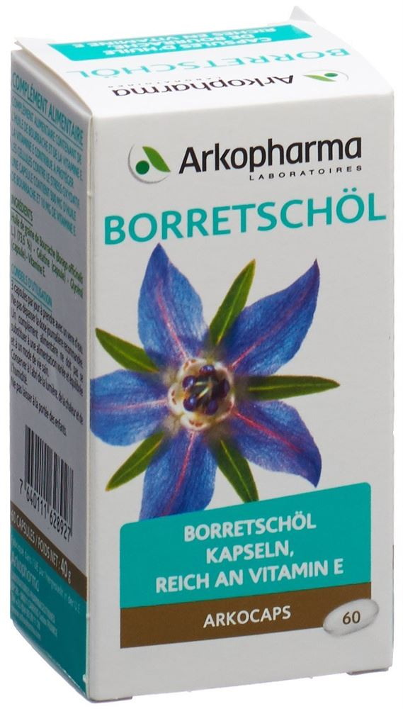 Nahrungsergänzungsmittel mit Borretschöl und Vitamin E.