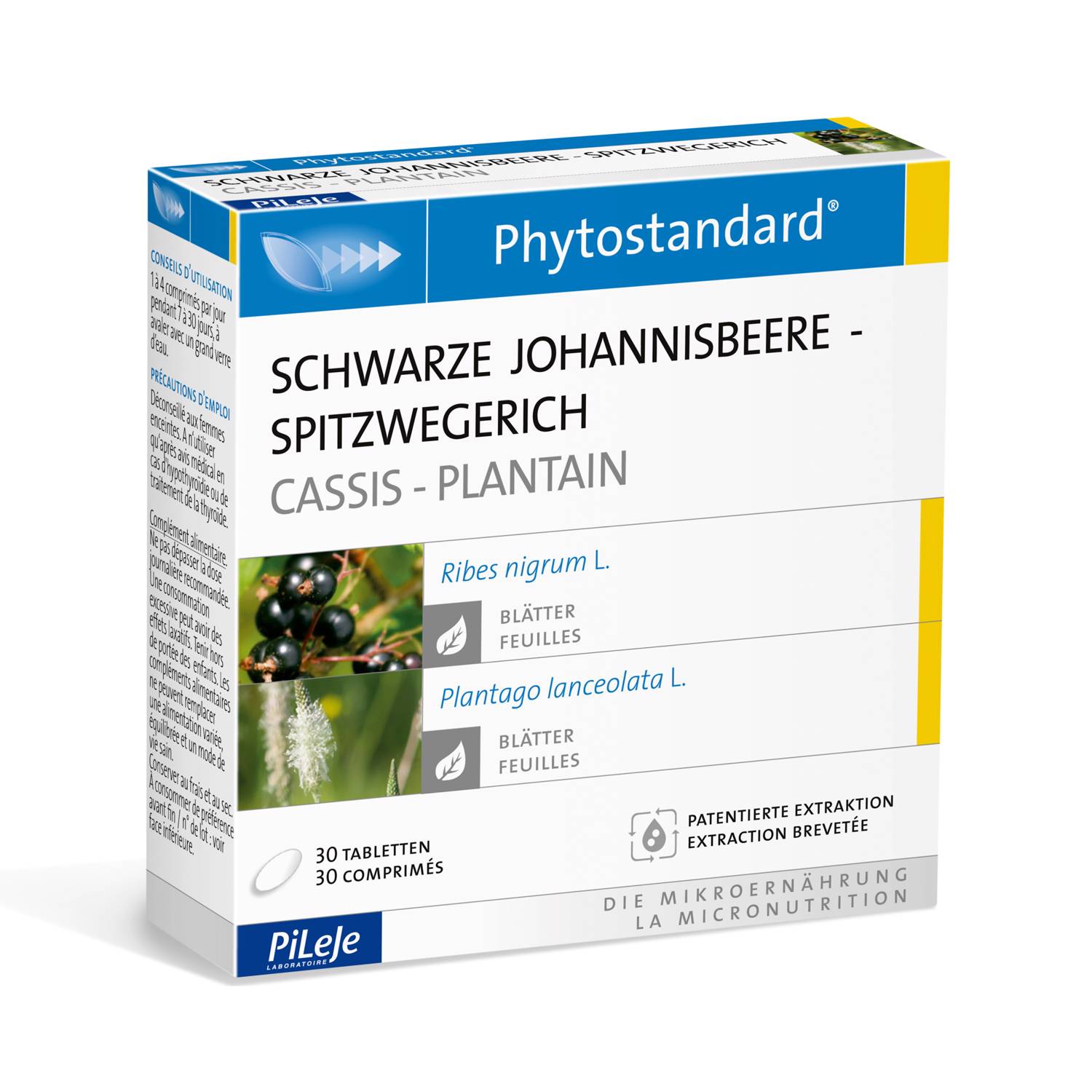 Phytostandards Schwarze Johannisbeere - Wegerich Tabletten helfen, die Symptome von Allergien, Asthma, Bronchitis und anderen Atemproblemen zu lindern. Die wohltuenden Eigenschaften dieser beiden Pflanzen unterstützen die Funktionen des Immunsystems.