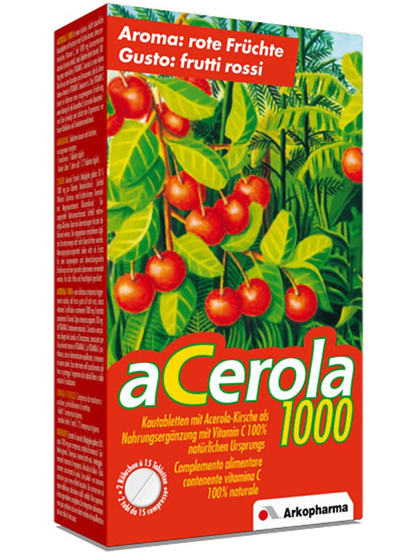Arkopharma's Laboratorien haben Arkovital® Acerola 1000 entwickelt: eine Formel, die auf 100% natürlichem Vitamin C basiert und ohne weitere chemische Inhaltsstoffe auskommt. Das Vitamin C, das in Arkovital® Acerola 1000 natürlich enthalten ist, hilft, die Müdigkeit zu reduzieren und das Immunsystem bei Erwachsenen und Kindern zu verbessern. Das in Arkovital® Acerola 1000 enthaltene Vitamin C wird ausschließlich aus Acerola-Beeren gewonnen. Die Acerola stammt ursprünglich aus Süd- und Mittelamerika und auch als "Barbados-Kirsche" bekannt ist. Acerola ist eine der reichsten Vitamin-C-Quellen der Welt. Die Arkovital® Acerola 1000 ist ohne Zusatz von künstlichem Vitamin, ohne chemische Farbstoffe und ohne chemische Inhaltsstoffe.