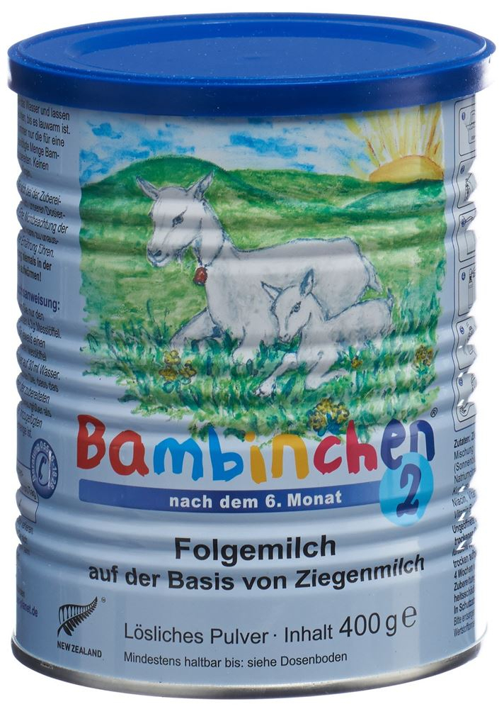Bambinchen 2 400 g ist eine Folgemilch, die zur besonderen Ernährung von Säuglingen geeignet ist. Bambinchen 2 ist nur ab einem Alter von 6 Monaten geeignet ist. Das Produkt ist auf der Basis von Ziegenvollmilch hergestellt.