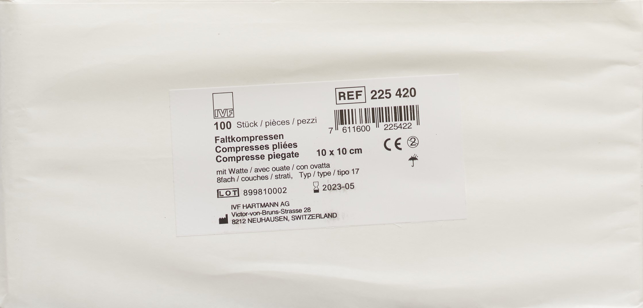 IVF Faltkompresse Watte Typ 17 10x10cm 8 fach 100 Stk