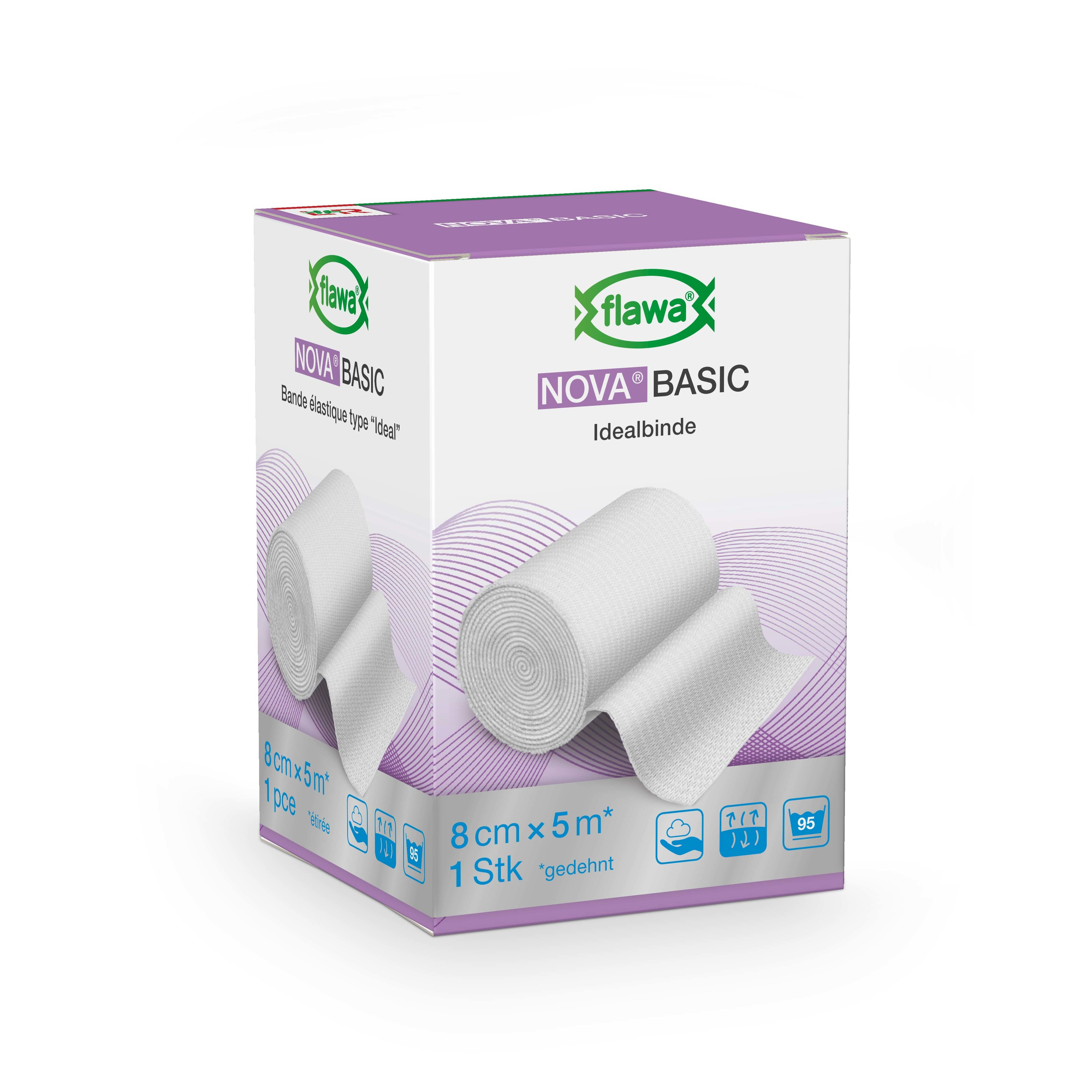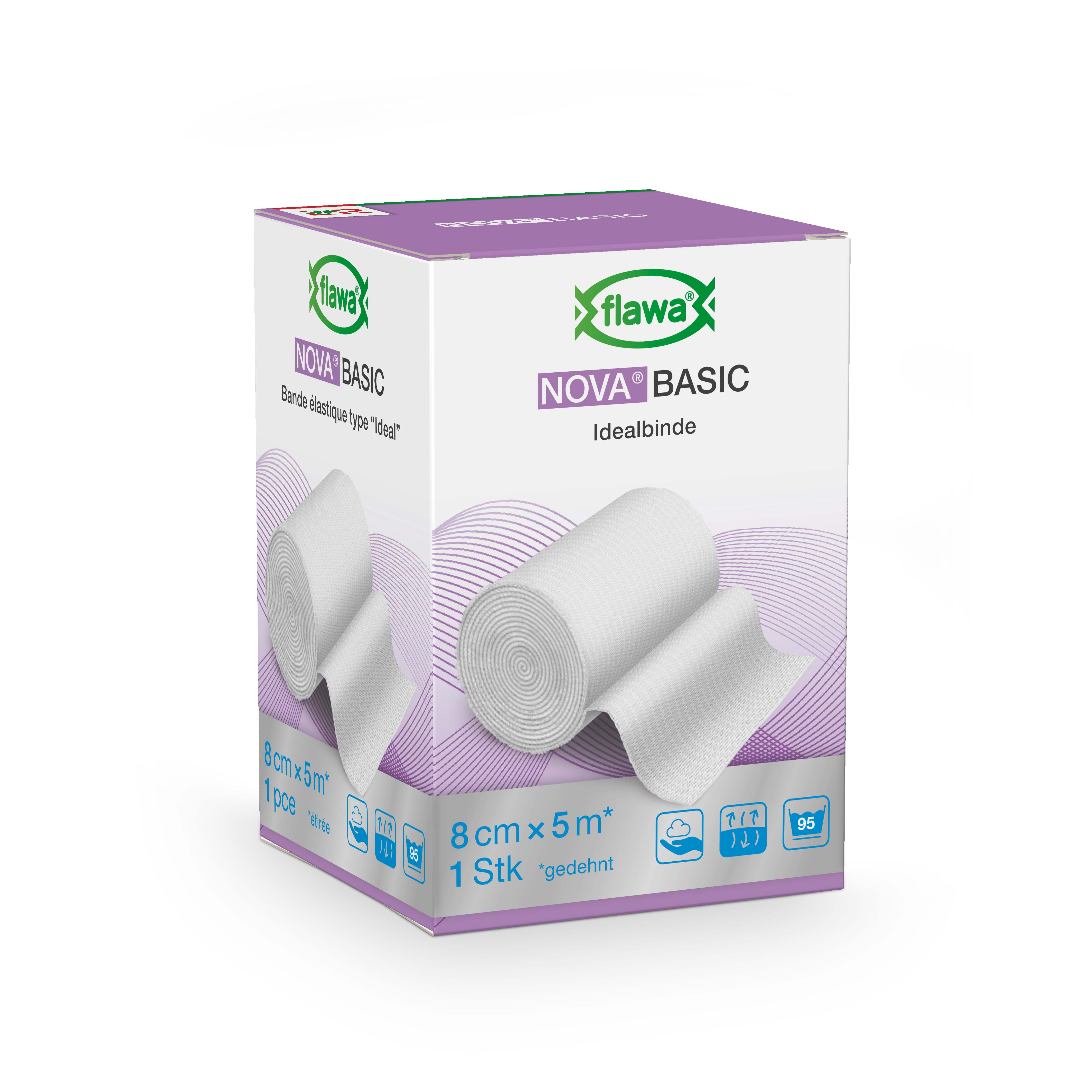 Die dehnbare Flawa Nova Basic Idealbinde mit den Massen 8cm x 5cm eignet sich zur Fixierung und Kompression von Wundauflagen bei kleineren Schnitten, Schürfungen und Verletzungen. Das Material ist hautfreundlich, luftdurchlässig und kann bei 95°C gewaschen werden.