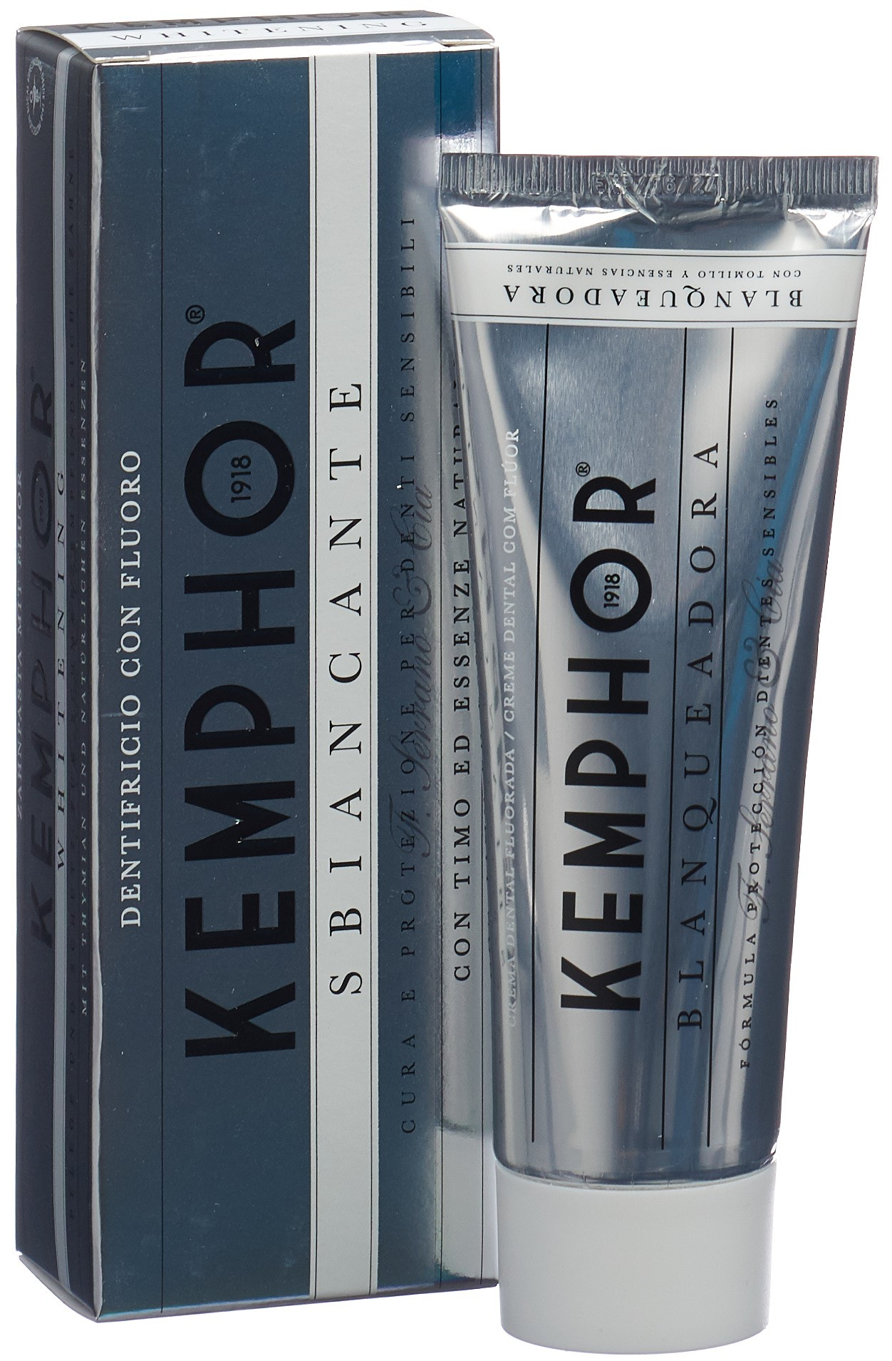 Kemphor Whitening besteht aus Thymian und natürlichen Essenzen. Diese innovative Formulierung verhilft zur sanften, aber effektiven Entfernung der Flecken und zur Wiederherstellung des natürlichen Weiss der Zähne. Sie reduziert die Empfindlichkeit gegenüber Kälte, Hitze, Säuren, Süssigkeit und beim Zähneputzen, während sie gleichzeitig für geringere Abrasivität sorgt. Die Kemphor Whitening Zahnpasta schützt und stärkt das Zahnfleisch, schont den Zahnschmelz und bekämpf den Zahnbelag. Die einzigartige Kombination der Inhaltsstoffe verleiht einen frischen Mund und Atem.