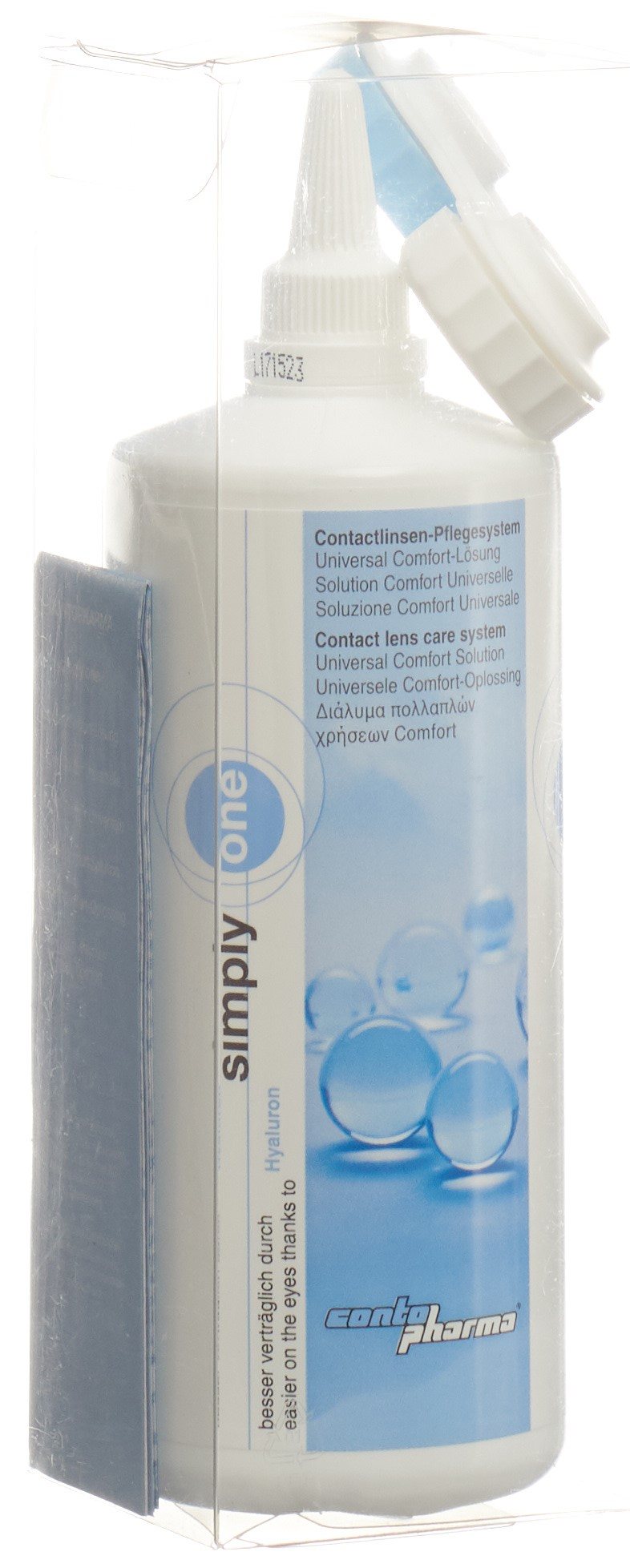 Eine Multifunktions-Lösung soll zum Reinigen, Desinfizieren, Spülen und Aufbewahren sowie Benetzen Verwendung finden, dies alles in einem Produkt. Die Universal Comfort-Lösung "simply one" ergibt einen spontanen wie auch nachhaltig guten Tragekomfort der CL. Die Regeneration der gesunden Hornhaut bei CL-TrägerInnen wird gefördert.