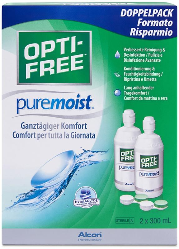 Opti-Free Puremoist Lösung ist eine Multifunktions-Desinfektionslösung für Silikon-Hydrogel-Kontaktlinsen und alle weichen Kontaktlinsen für ganztägigen Komfort.