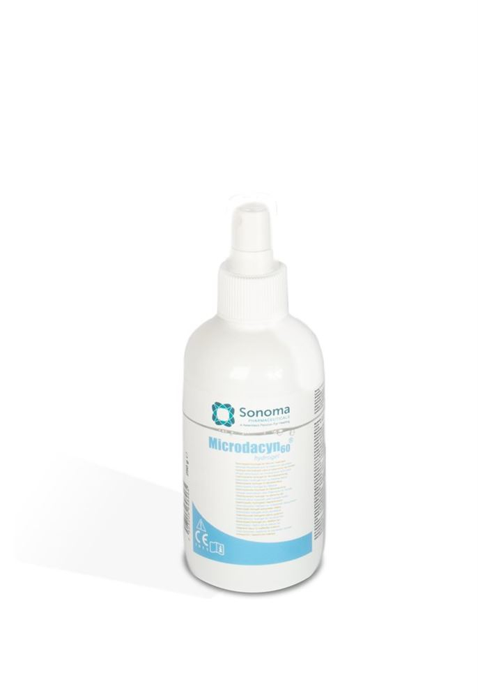 Microdacyn60® Wound Care ist eine gebrauchsfertige Wundspüllösung mit aktiviertem (naszierendem) Sauerstoff. Es wird mit der patentierten Mikrocyntechnologie von Oculus Innovative Science aus ultrareinem Wasser und geringen Mengen NaCl hergestellt.