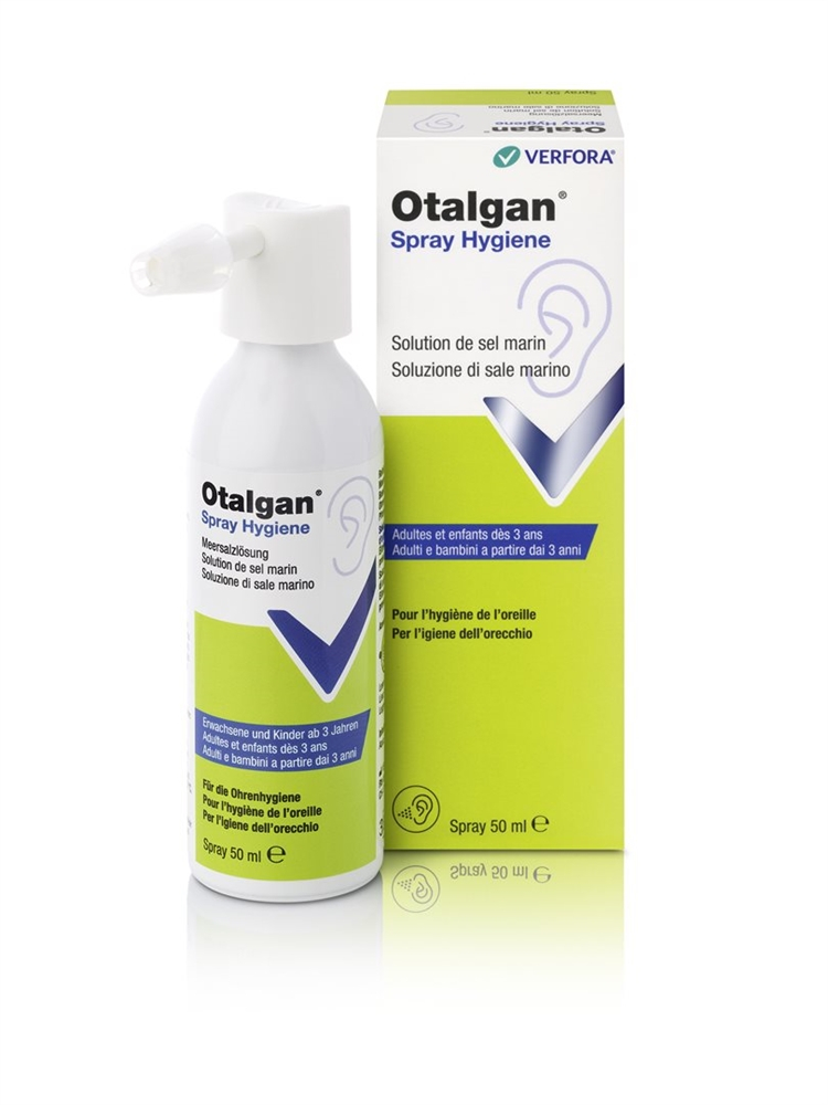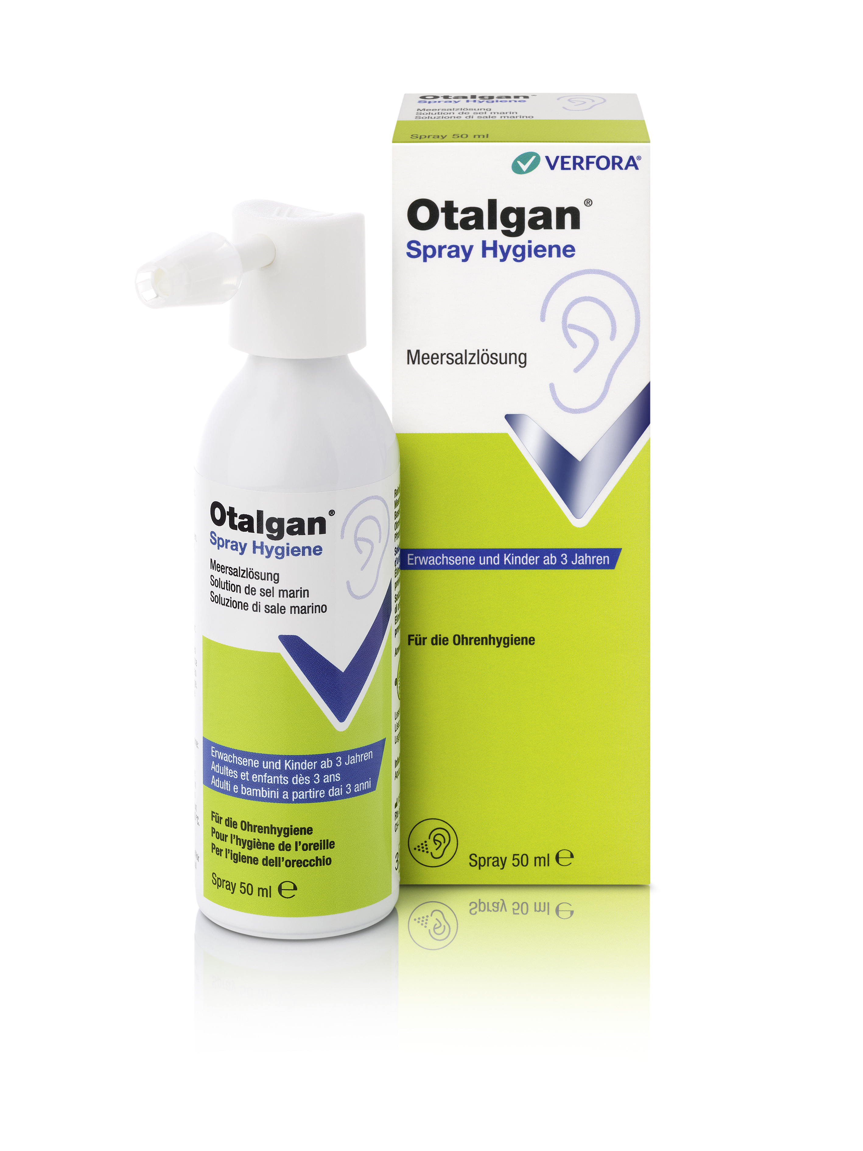 Otalgan Spray Hygiene ist eine Meersalzlösung zur Reinigung und Hygiene des äusseren Gehörgangs.