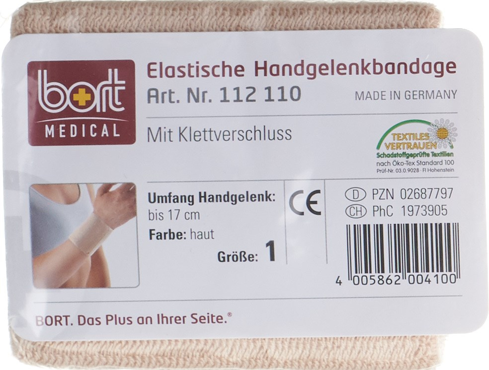 Bort Handgelenkbandage Velcro 8cm Gr1 -17cm beige 1 Stk