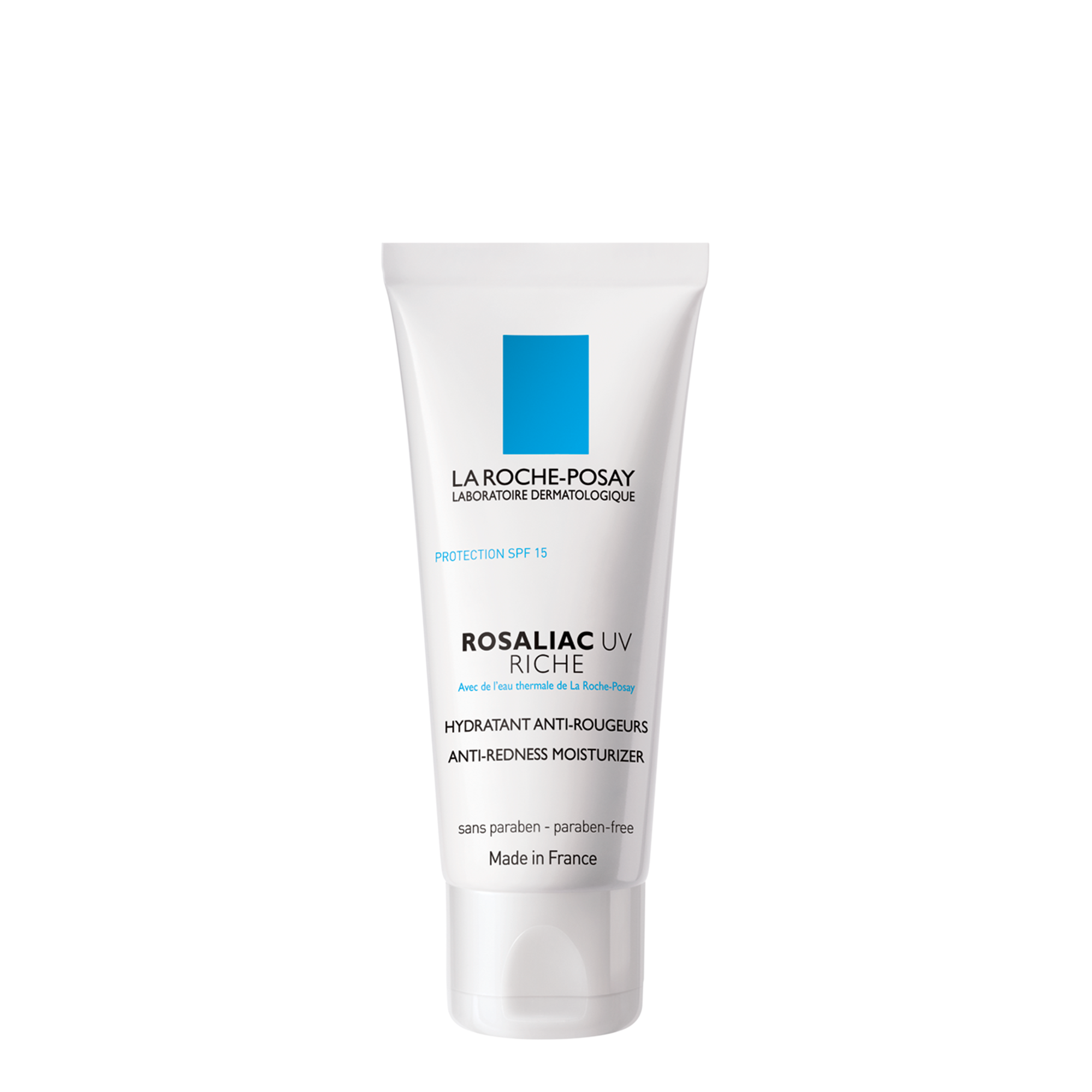 Die ROSALIAC UV REICHHALTIGe Feuchtigkeitspflege von La Roche-Posay wurde speziell für empfindliche und zu Rötungen oder Rosazea neigende Haut entwickelt. Die Textur wirkt bei Rötungen und gereizter Haut angenehm frisch und beruhigend. Die Gesichtscreme kaschiert Hautrötungen direkt nach dem Auftragen der zartgrünen Textur und lässt den Teint sichtbar ebenmässiger wirken. ROSALIAC UV REICHHALTIG mit Vitamin B3 und Thermalwasser erhöht die natürliche Widerstandskraft der Haut gegenüber äusseren Reizungen und hilft dabei, Bindegewebe und Gefässwände kontinuierlich zu kräftigen. Dadurch werden neuen Hautrötungen und Hautproblemen wie Brennen, Hautprickeln, Hitzegefühl sowie kleinen, sichtbaren Äderchen aktiv vorgebeugt. Zusätzlich schützt das patentierte Mexoryl XL Filtersystem mit LSF 15 die Haut täglich vor UV-Strahlung, die ansonsten unerwünschte Rötungen verstärken kann. Ohne Duftstoffe.Wirkung