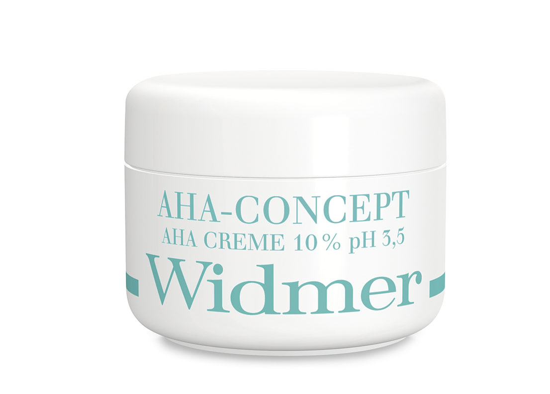 Louis Widmer AHA Gesichtscreme 10 % wirkt erweichend, beruhigend und hat Peeling Effekt.