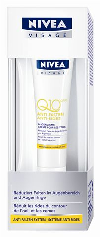Die leichte Nivea Visage Q10plus Anti-Falten Augencreme reduziert Falten sichtbar und mindert Augenringe.