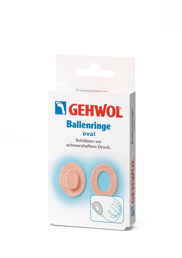 Die Gehwol Ballenringe schützen vor schmerzhaftem Druck. Aus weichem Filz mit einer hautfreundlichen Pflasterschicht.