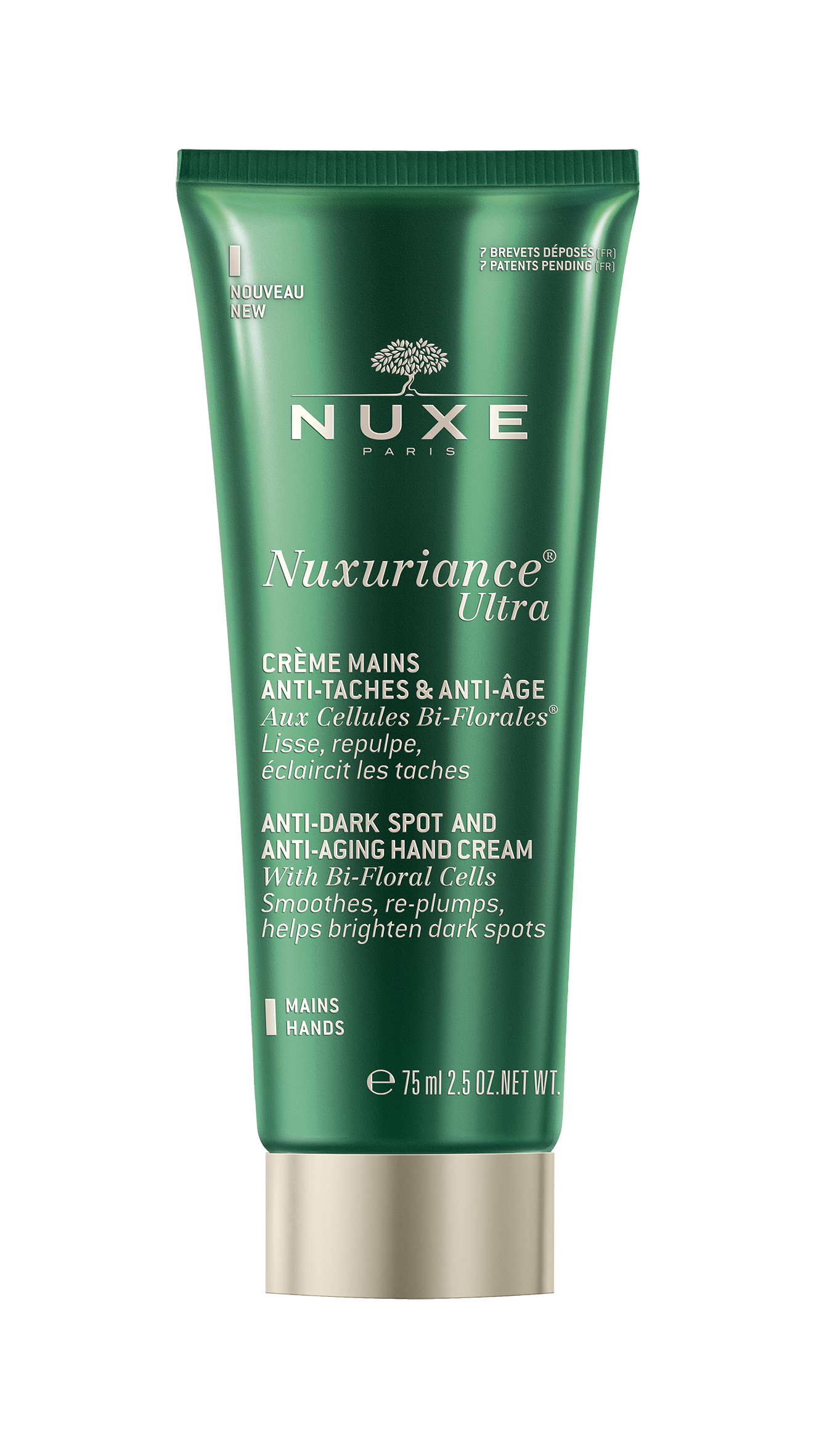 Nuxe Nuxuriance Ultra Anti-Aging Handcreme gegen Pigmentflecken 75 ml ist eine Handcreme, die Biflorale Zellen von Safran und Bougainvillier enthält. Das Produkt hellt die Pigmentflecken auf.