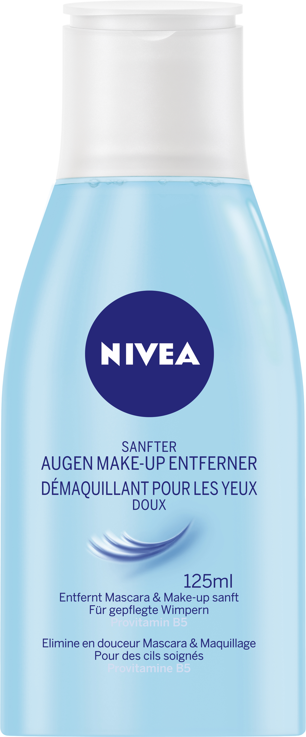 Der Nivea Sanfter Augen Make-Up Entferner mit Provitamin B5 entfernt wasserlösliches Augen Make-up sanft und gründlich, ohne zu fetten.