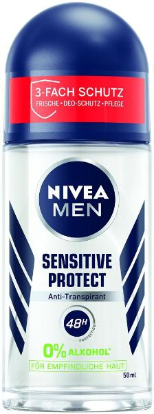 Nivea Men Sensitive Protect Anti-Transpirant roll-on, 48h Schutz, für empfindliche Haut.
