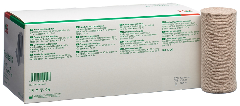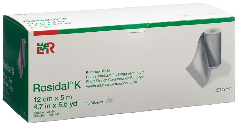 Die Rosidal K Kurzzugbinde ist eine kräftig komprimierende sowie textilelastische Binde mit kurzem Zug, welche der starken Kompression von Extremitäten in phlebologischer Therapie dient. Darüber hinaus wird sie auch zur Behandlung akuter und chronischer Lymphödeme eingesetzt und findet auch zum Stützen sowie Entlasten in der Traumatologie und Sportmedizin Anwendung. Dabei ist die Binde angenehm luftdurchlässig und besonders hautsymptomatisch. Dank der griffigen Gewebestruktur haben die Bindentouren einen guten Halt aufeinander.