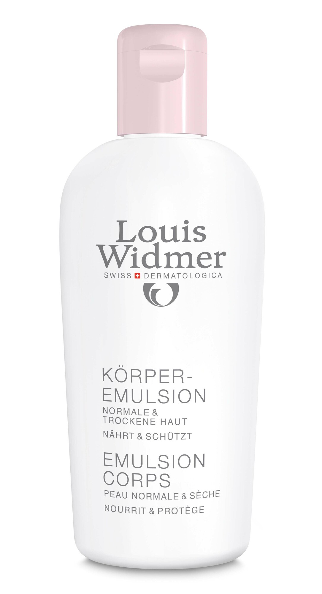 Louis Widmer Körperemulsion spendet normaler und trockener Haut Feuchtigkeit und beruhigt irritierte Haut, wodurch sie weich, geschmeidig und elastisch wird.